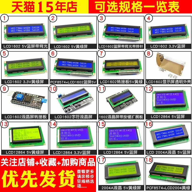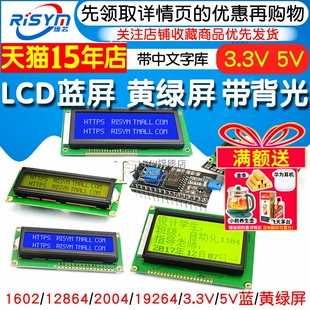 5V液晶屏幕diy 2004蓝屏黄绿屏背光LCD显示屏3.3V LCD1602A 12864