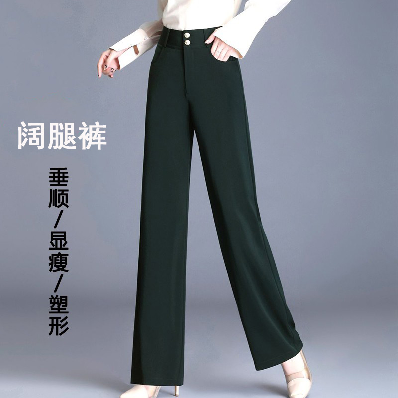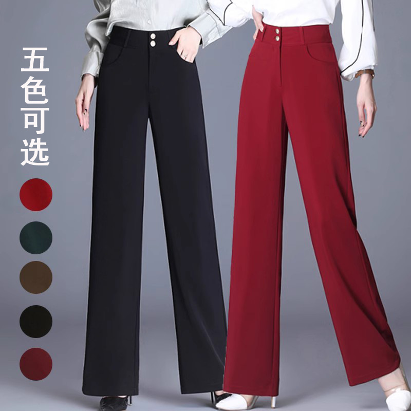 大码 垂坠高腰大脚裤 裤 垂顺阔腿裤 女 西装 女长裤 甩裤 春秋新款 直筒裤
