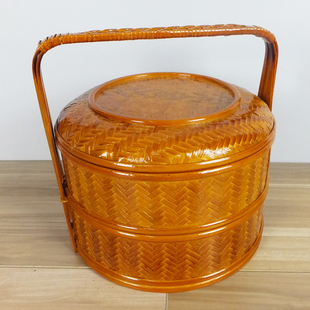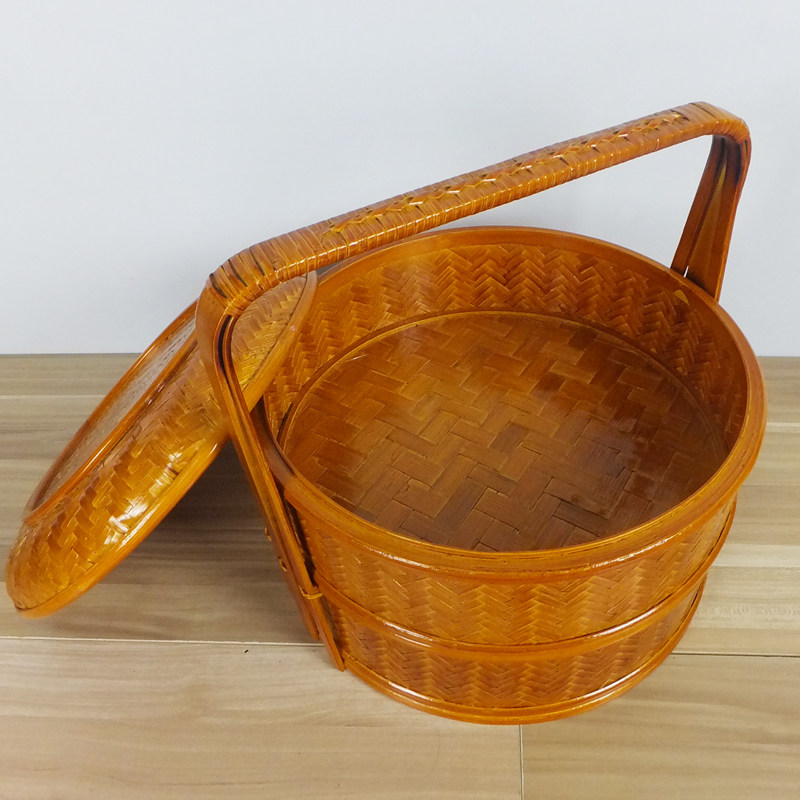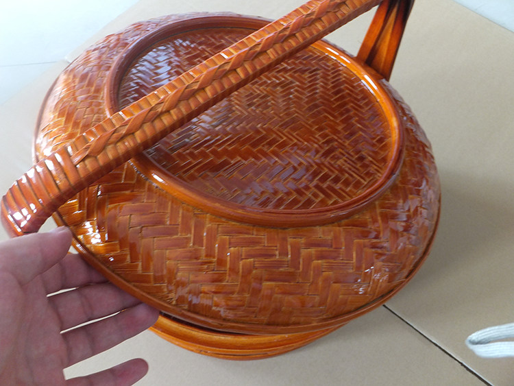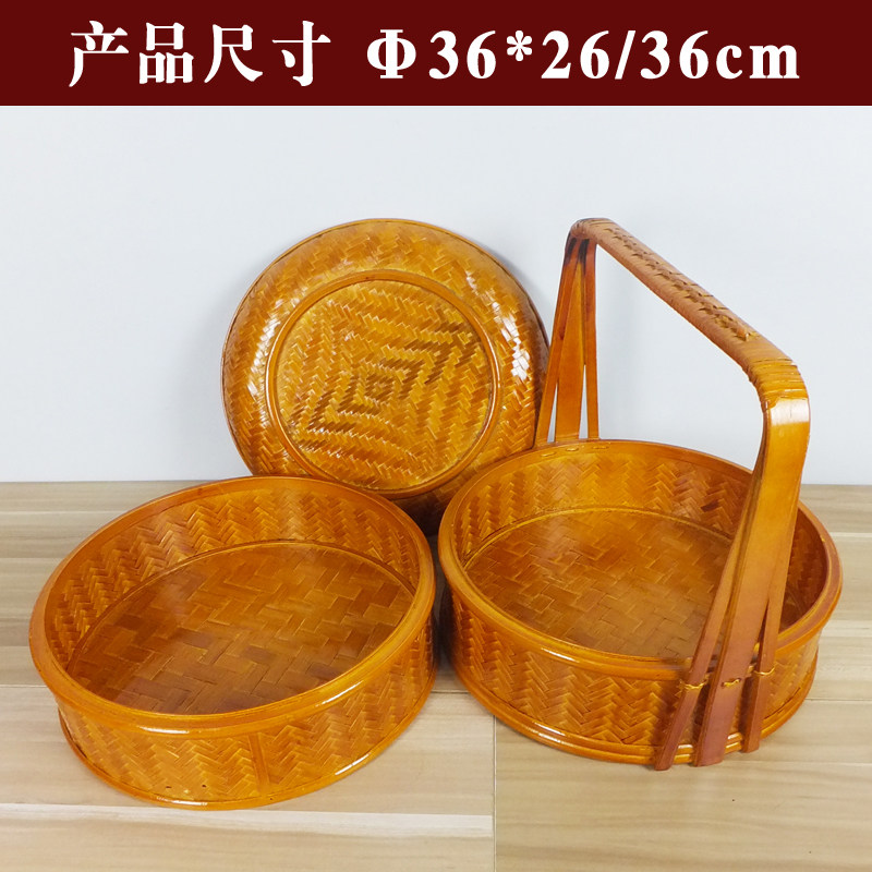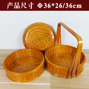 婚庆礼品蓝 特价 食盒提篮 圆形送餐篮 提篮茶筐现货 竹编手工艺