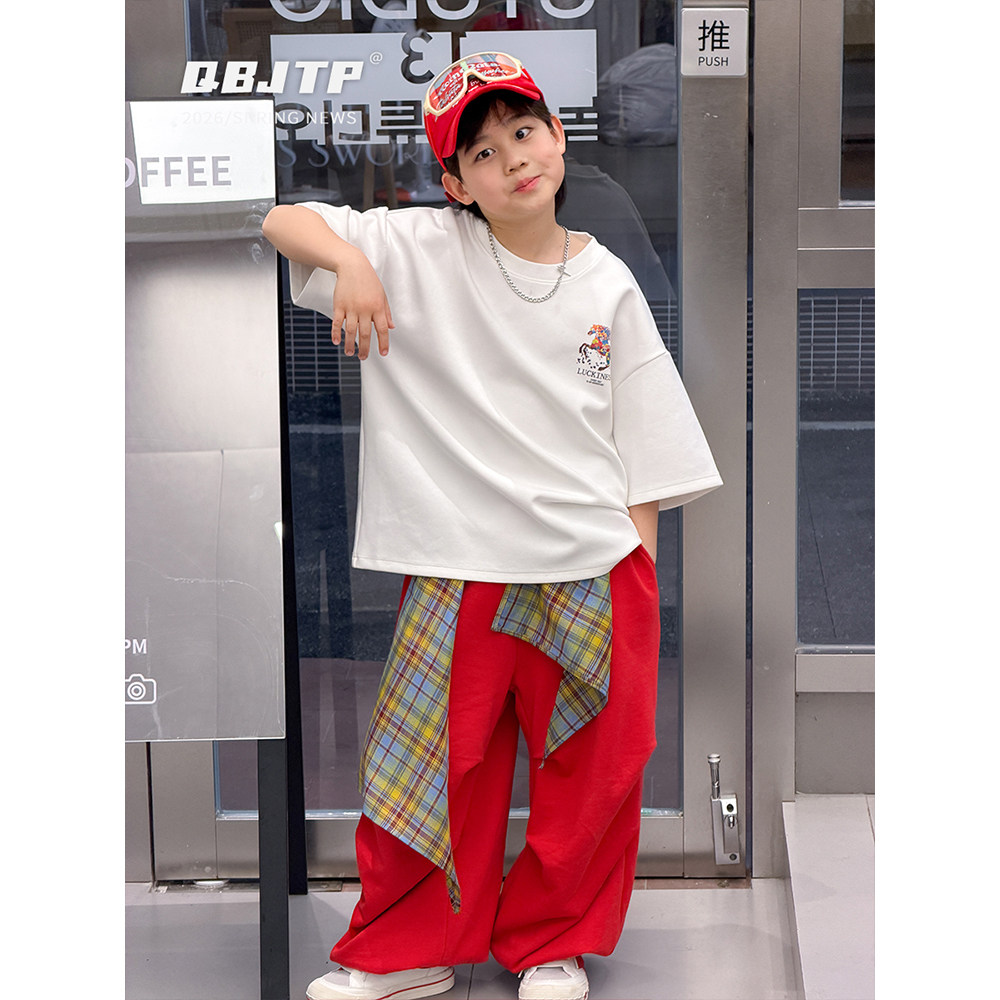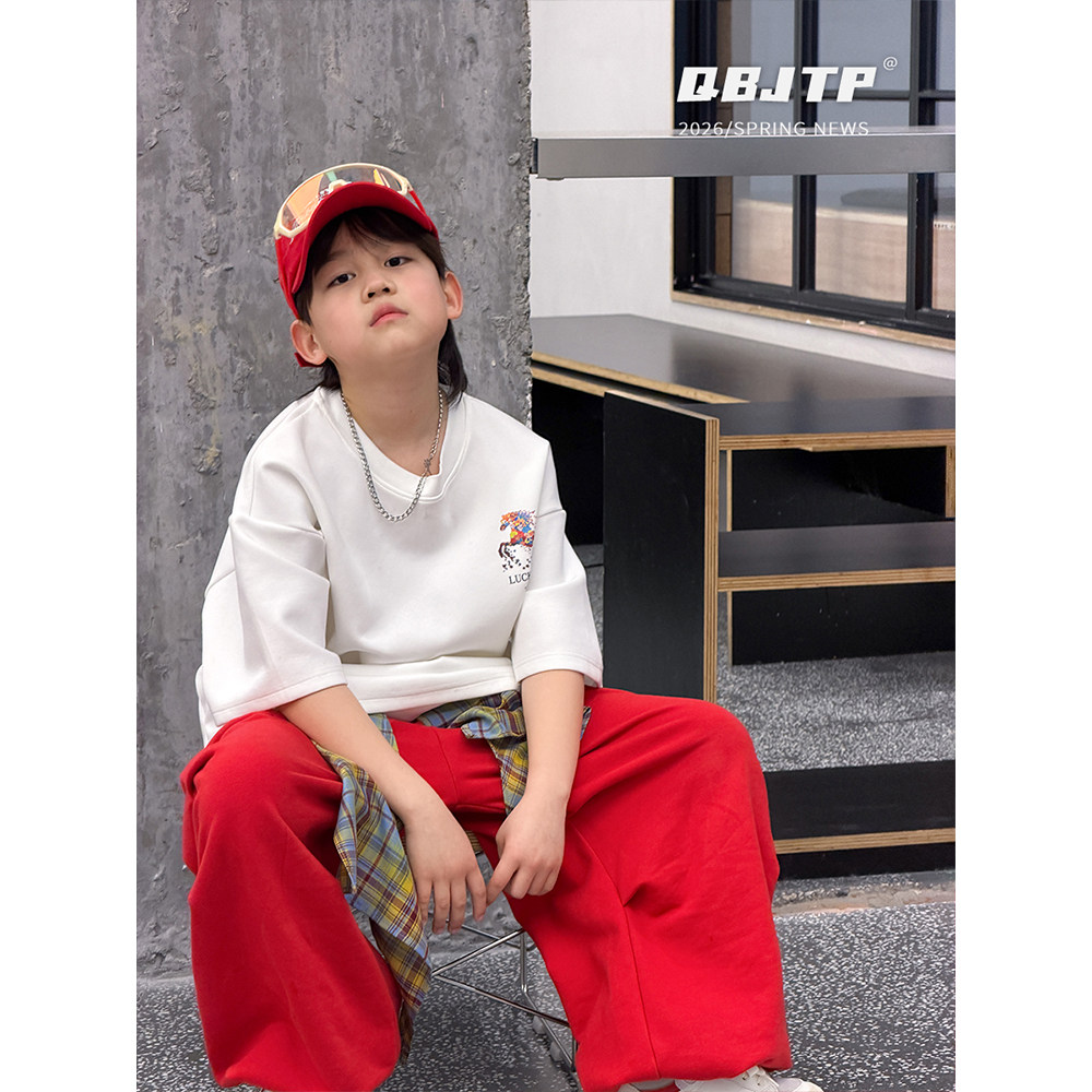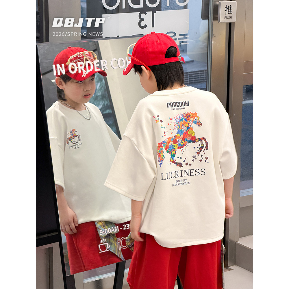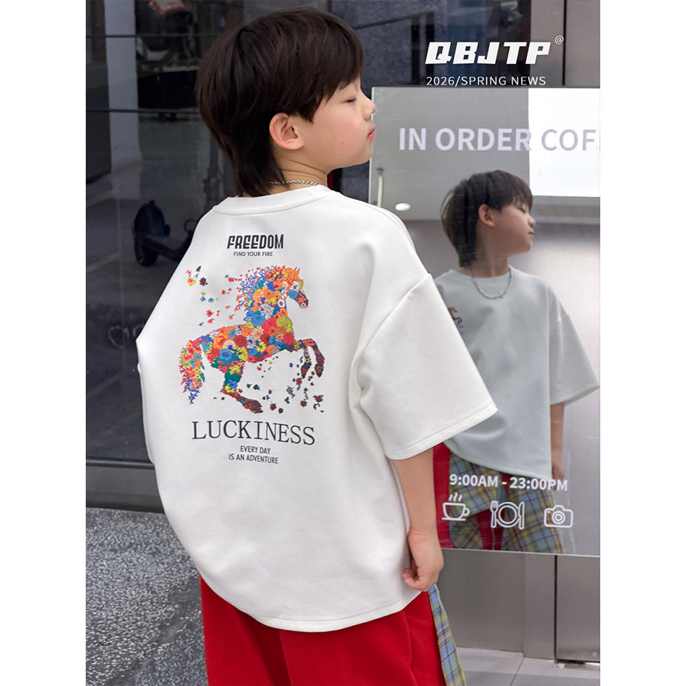 儿童宽松上衣中大童白色短袖 T恤2026春夏新款 潮 男童短袖 Q宝家童装