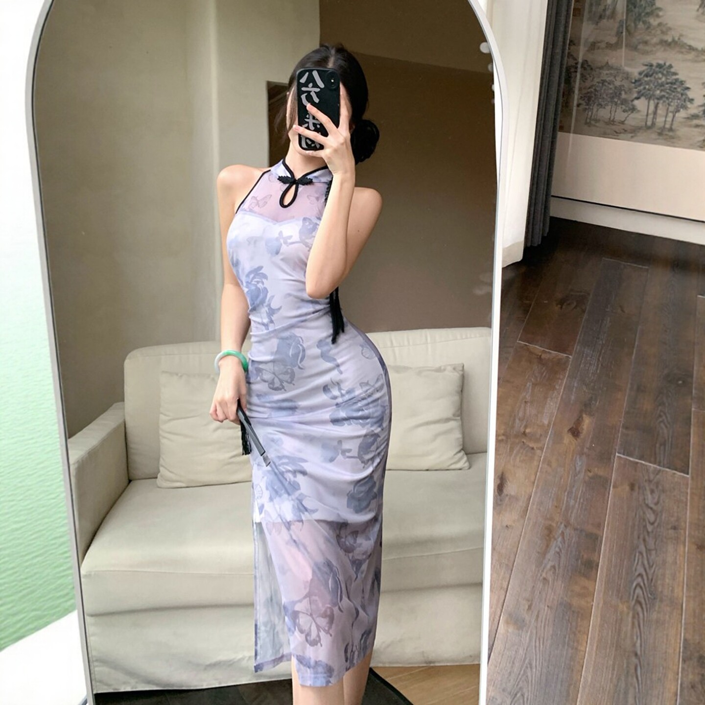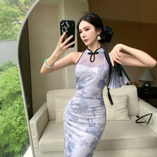 收腰包臀高开衩长款 改良旗袍复古花色无袖 连衣裙夏 优雅新中式 时尚