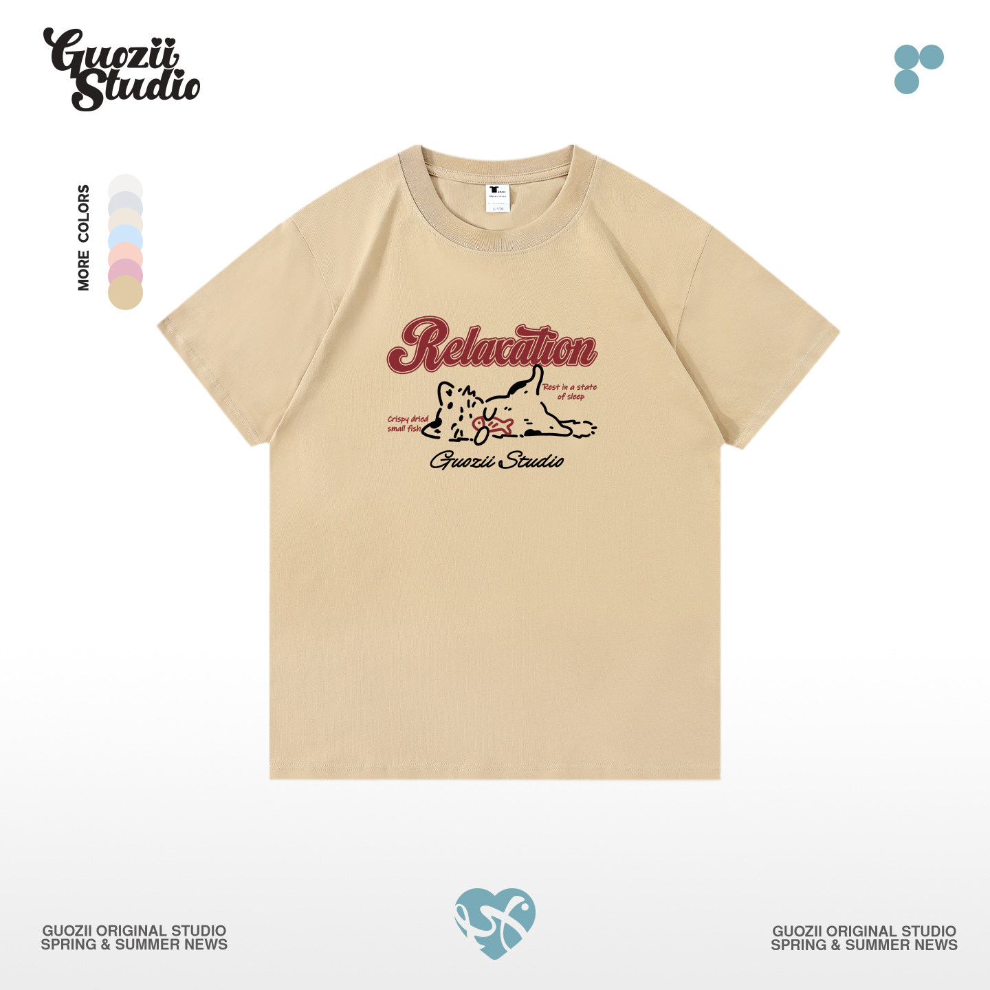上衣情侣装 Guozii美式 新款 T恤女男夏季 正肩体恤 复古动物印花短袖