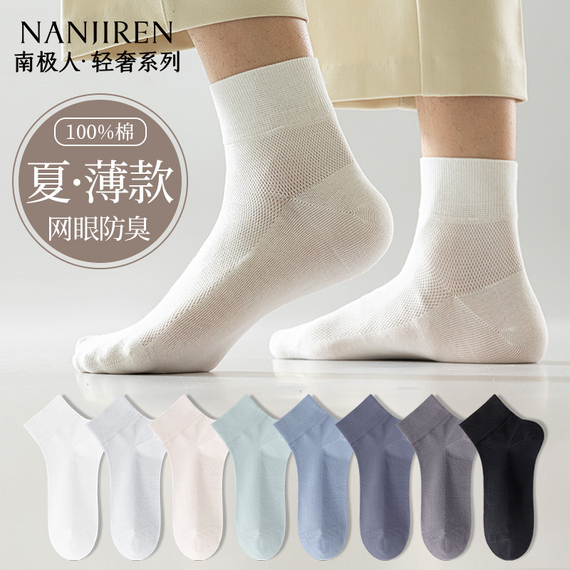 短袜2026新款 中筒透气抗菌防臭全棉男士 纯棉夏薄款 南极人袜子男款