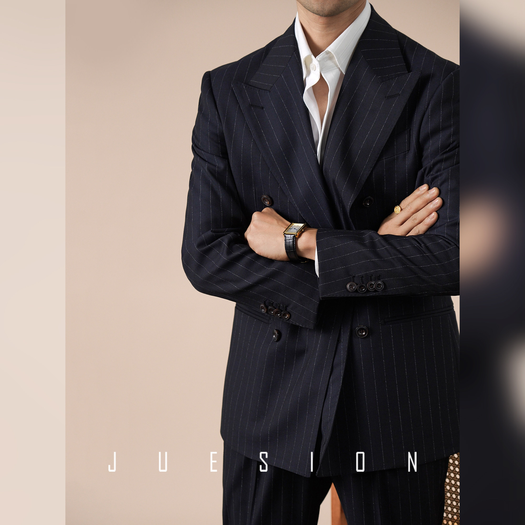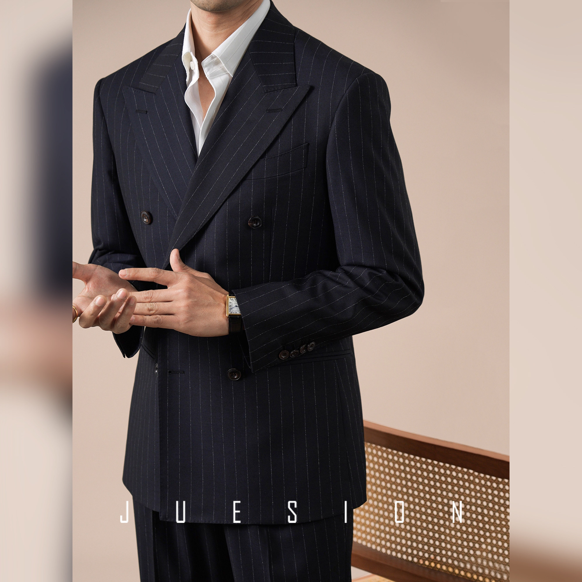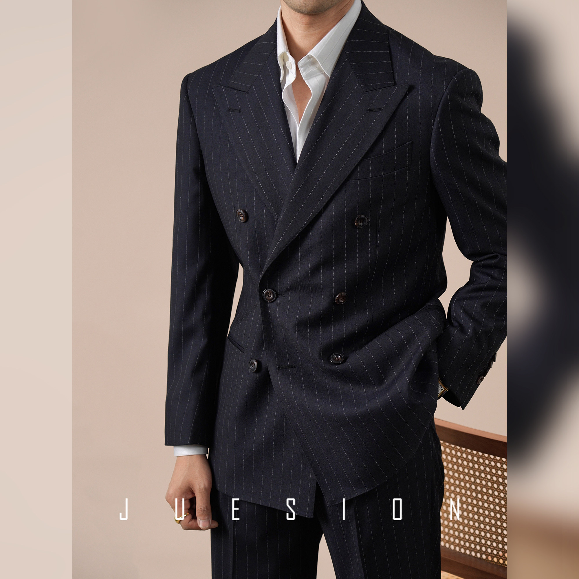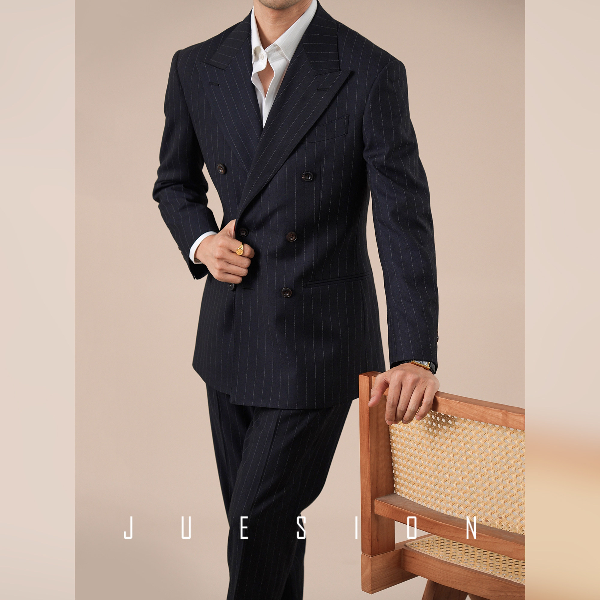 礼服戗驳领西装 男商务休闲宴会装 外套 色纺双排扣西服套装 JUESION