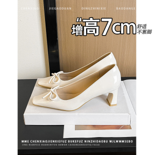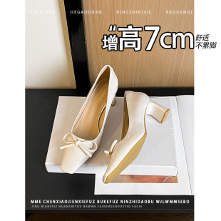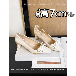 不累脚粗跟高跟鞋 新款 女2026春季 少女风增高7cm蝴蝶结浅口单鞋