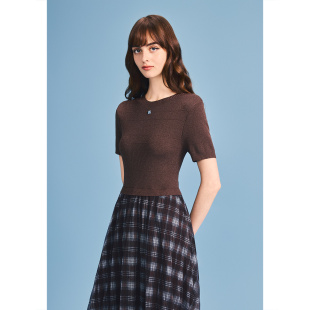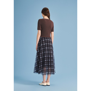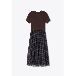 新款 诗篇专选短袖 T恤拼格纹网纱印花连衣裙2026夏季