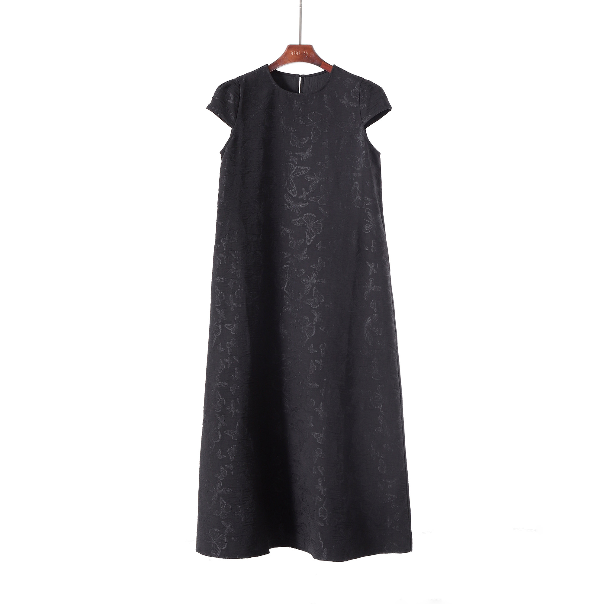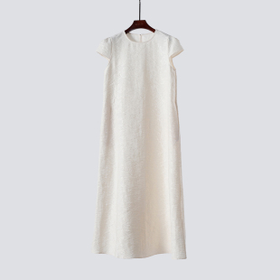 重磅提花真丝混纺法式 连衣裙气质长裙 赫本风黑色白色宫廷袖