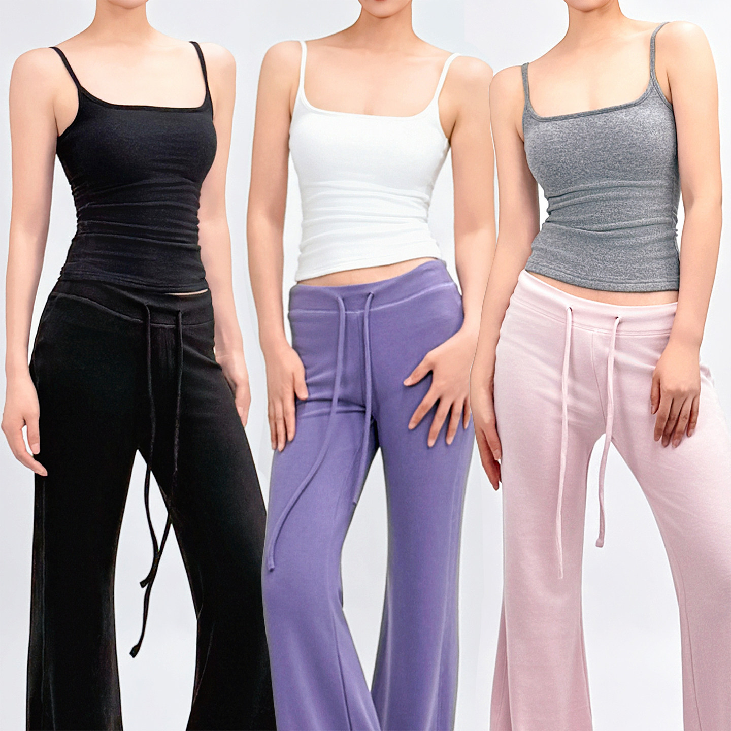 SUN90 打底上衣含胸垫外穿多色内搭 运动风德绒细吊带背心低领修身