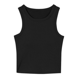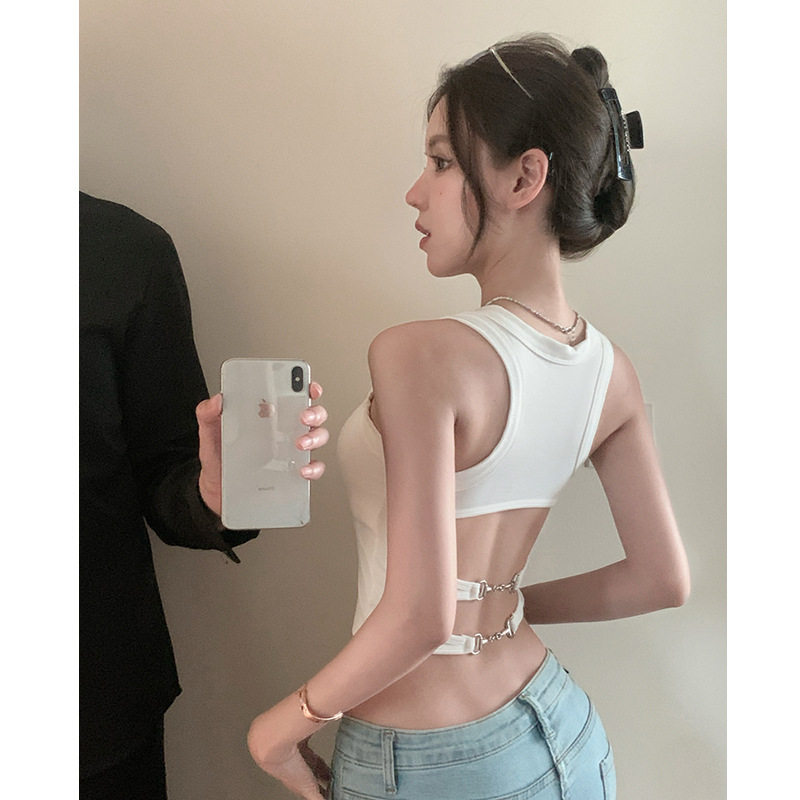 内搭外穿短款 无袖 上衣夏 辣妹工字背心女带胸垫镂空紧身打底衫 美式