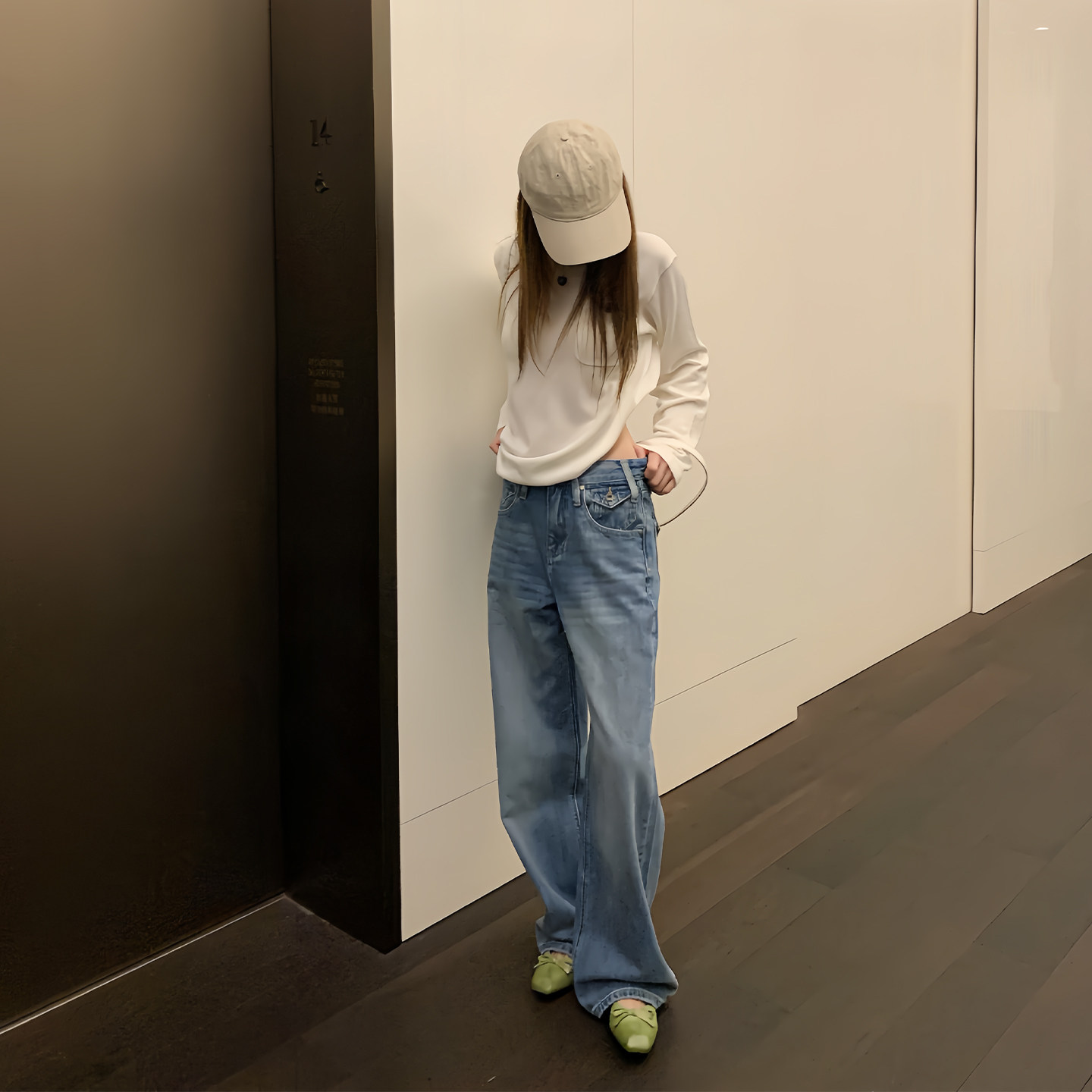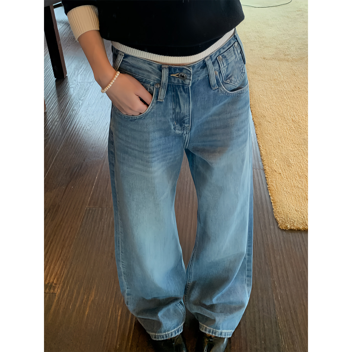 不贴腿遮肉显瘦阔腿裤 女春季 2026新款 橘子树在哪儿复古蓝色牛仔裤