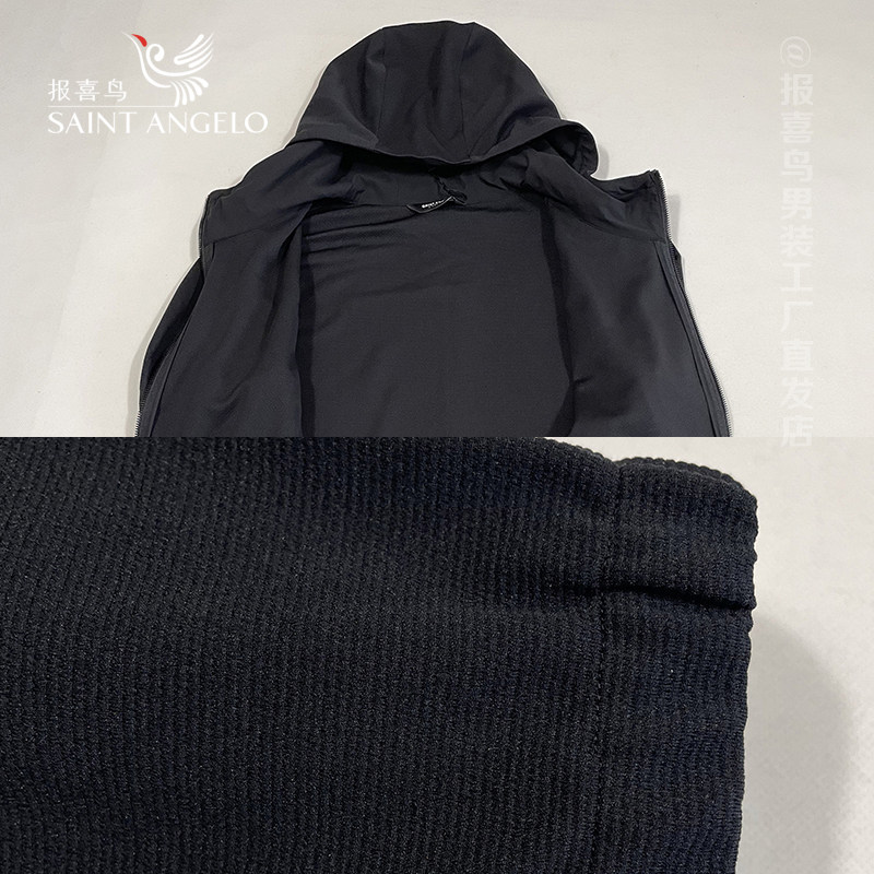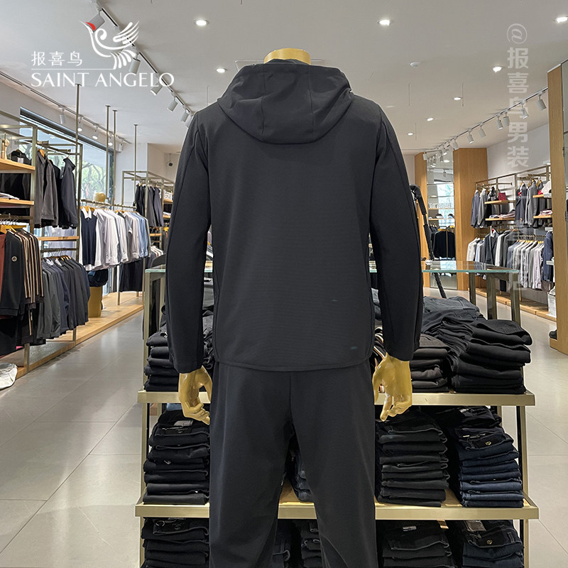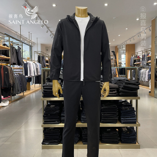 男套装 大牌男装 报喜鸟男士 卫衣套装 休闲高端黑色带帽夏季 运动服装