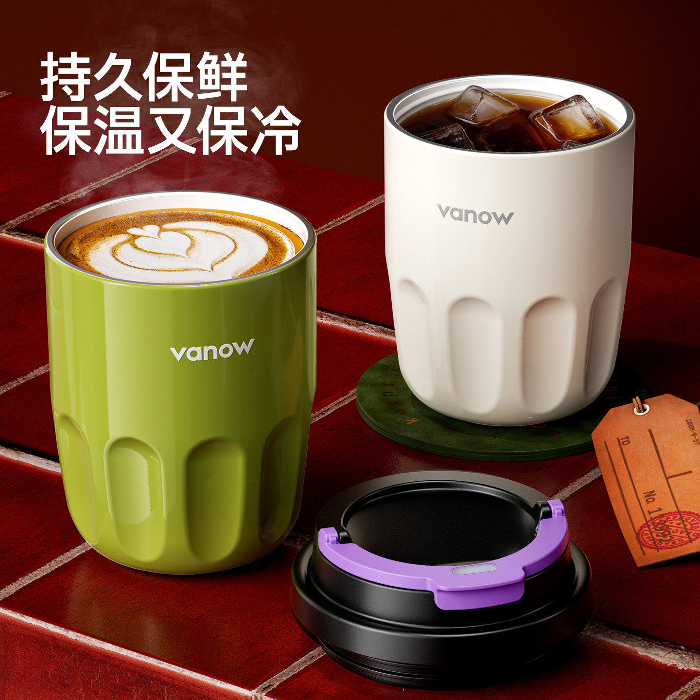 Vanow咖啡杯女保温杯小巧便携随行高颜值陶瓷内胆外出携带水杯子