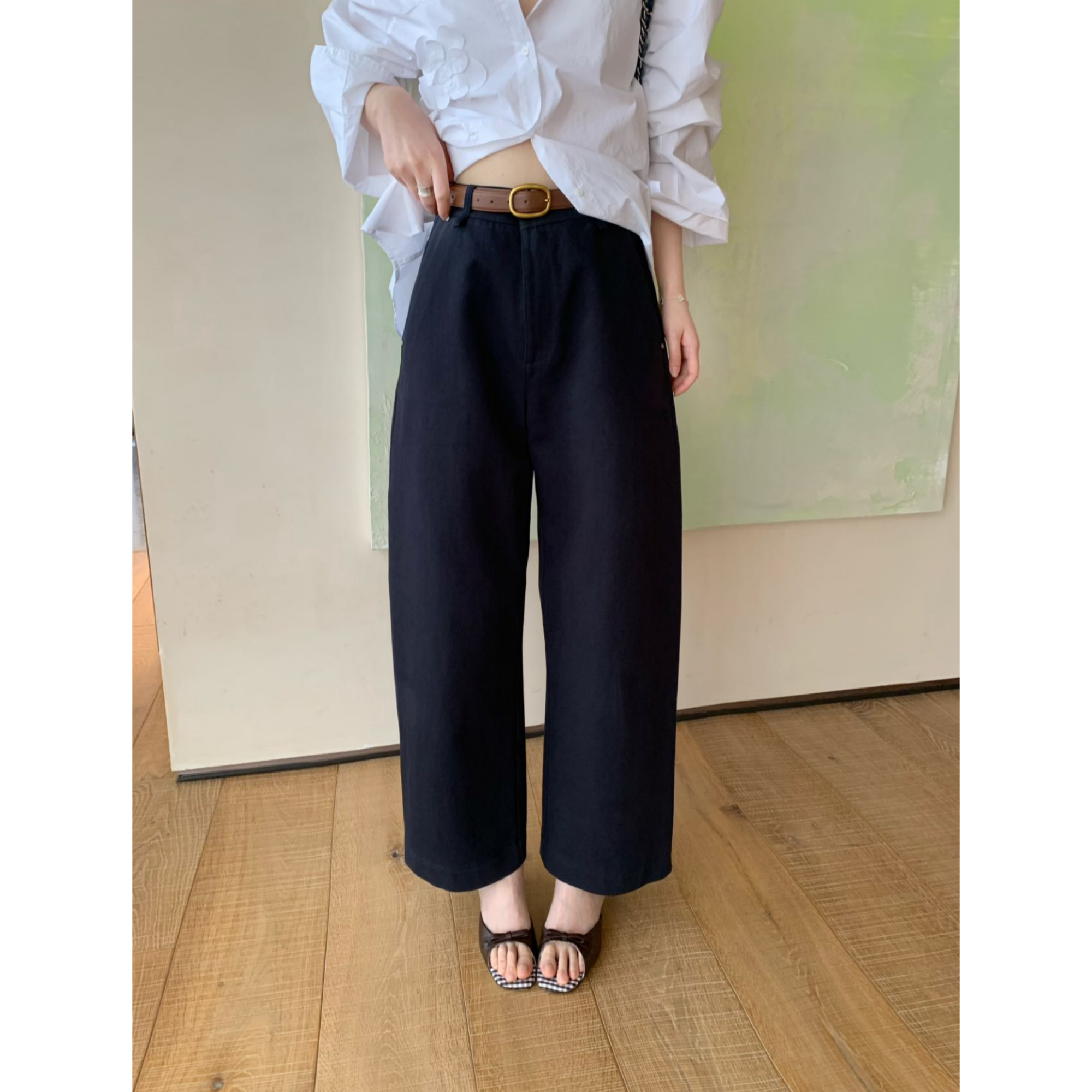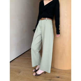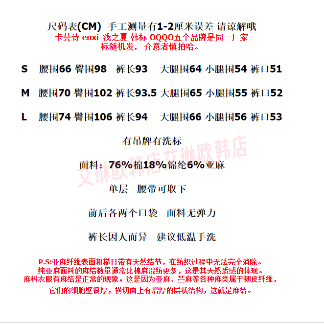 棉麻休闲裤 配腰带显瘦百搭直筒阔腿裤 女 卡蔓enxi20862春新款 3.4
