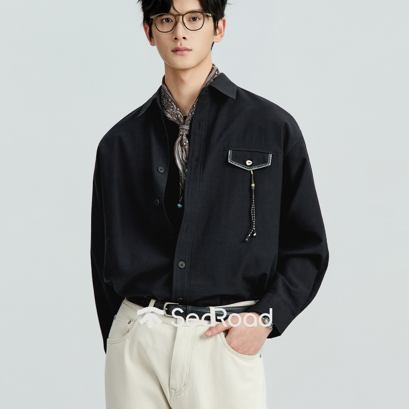 手编小满结莱赛尔透气通勤松弛感上衣服 春季 海上公路编绳衬衫 男士