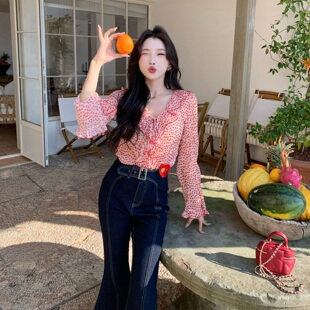 上衣 复古浪漫感设计感红色波点衬衫 陈六六CHENLIULIU 撩人心弦