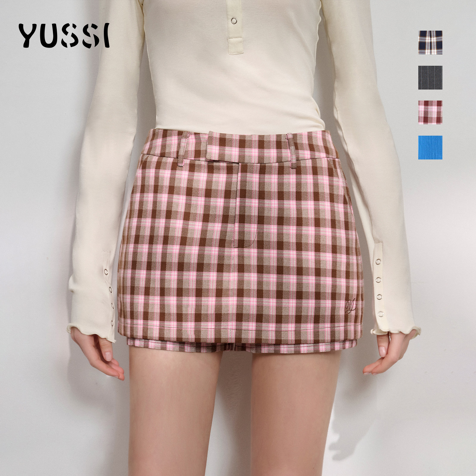 YUSSI2026春夏新款 超好看包臀显瘦半身裙子 灰色格子短裙女a字裙裤