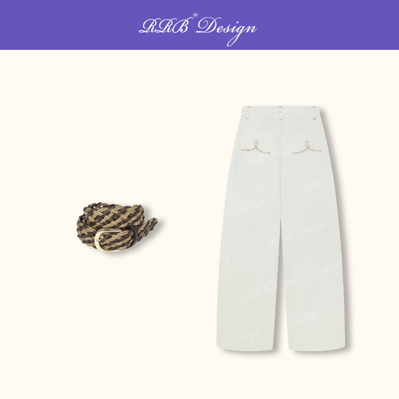 潮流休闲裤 RRB 简约百搭直筒裤 宽松显瘦白色牛仔裤 Design