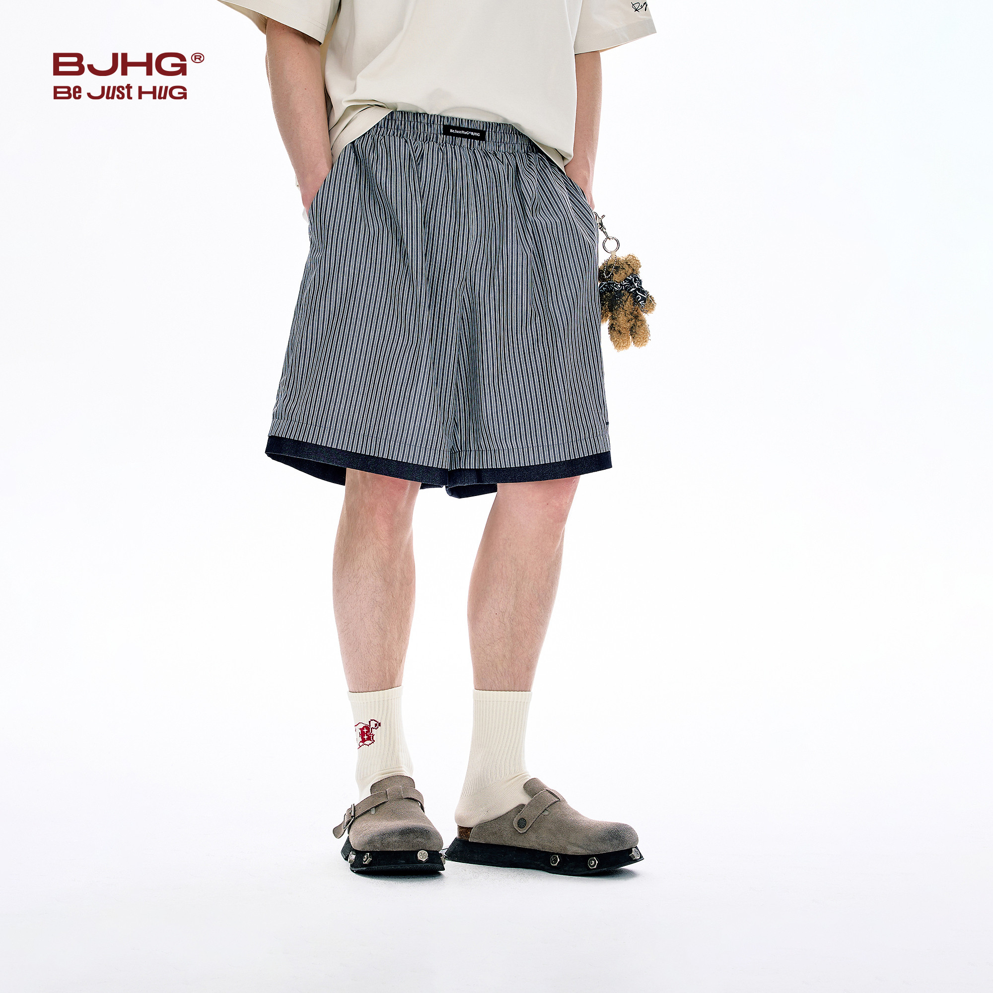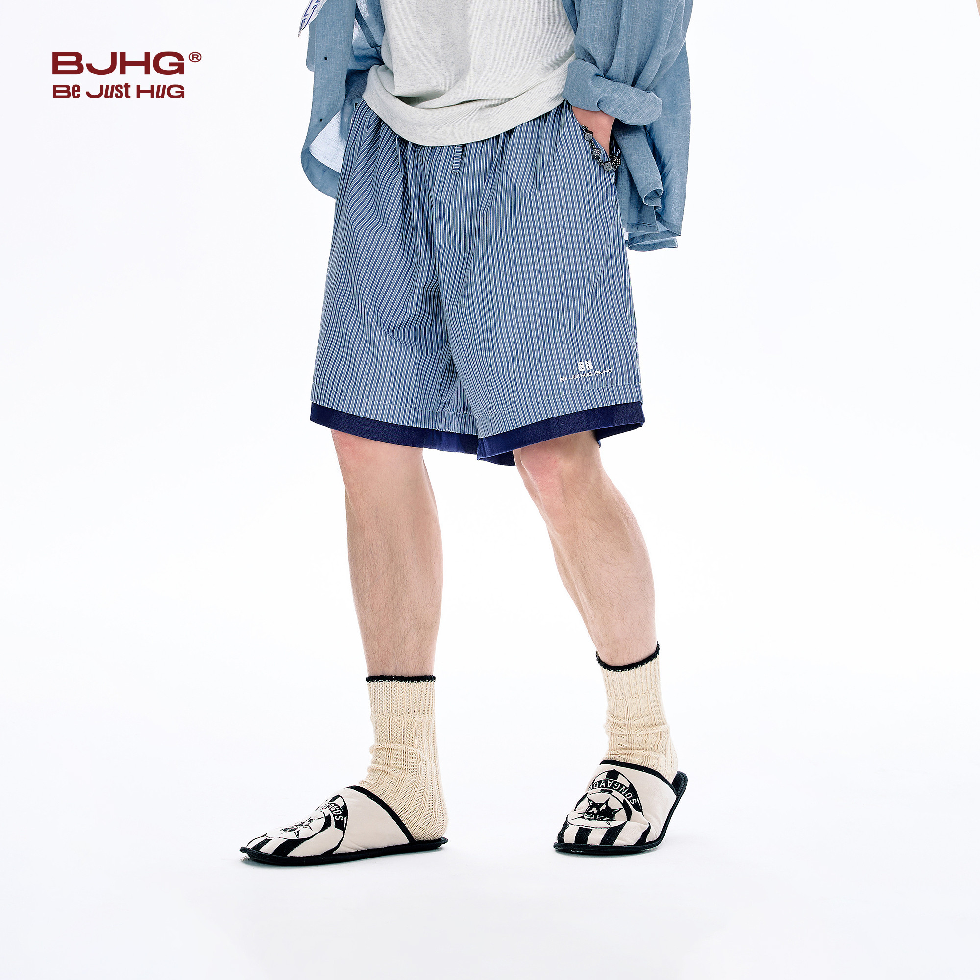 度假风百搭沙滩五分裤 BJHG不计后果条纹休闲短裤 新款 夏季 子女 男款