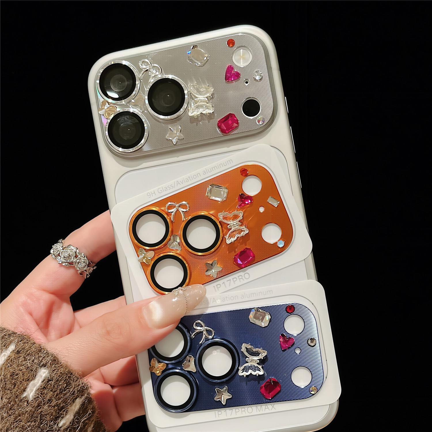 ins蝴蝶宝石爱心立体高级感镜头膜适用iPhone17pro苹果17promax底座膜静电吸附17pm手机后摄像头贴纸保护贴膜