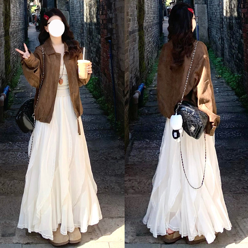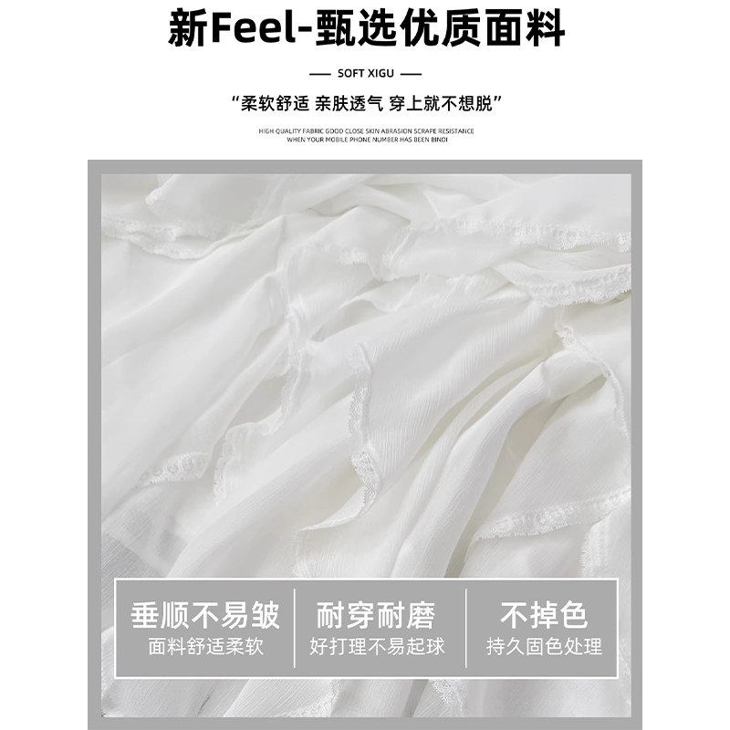 白色不规则蕾丝半身裙女春夏2026新款 高腰温柔风a字裙子韩系长裙