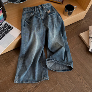 2026早春新款 美式 牛仔裤 八分九分裤 时髦潮 宽松阔腿裤 艾恩晟