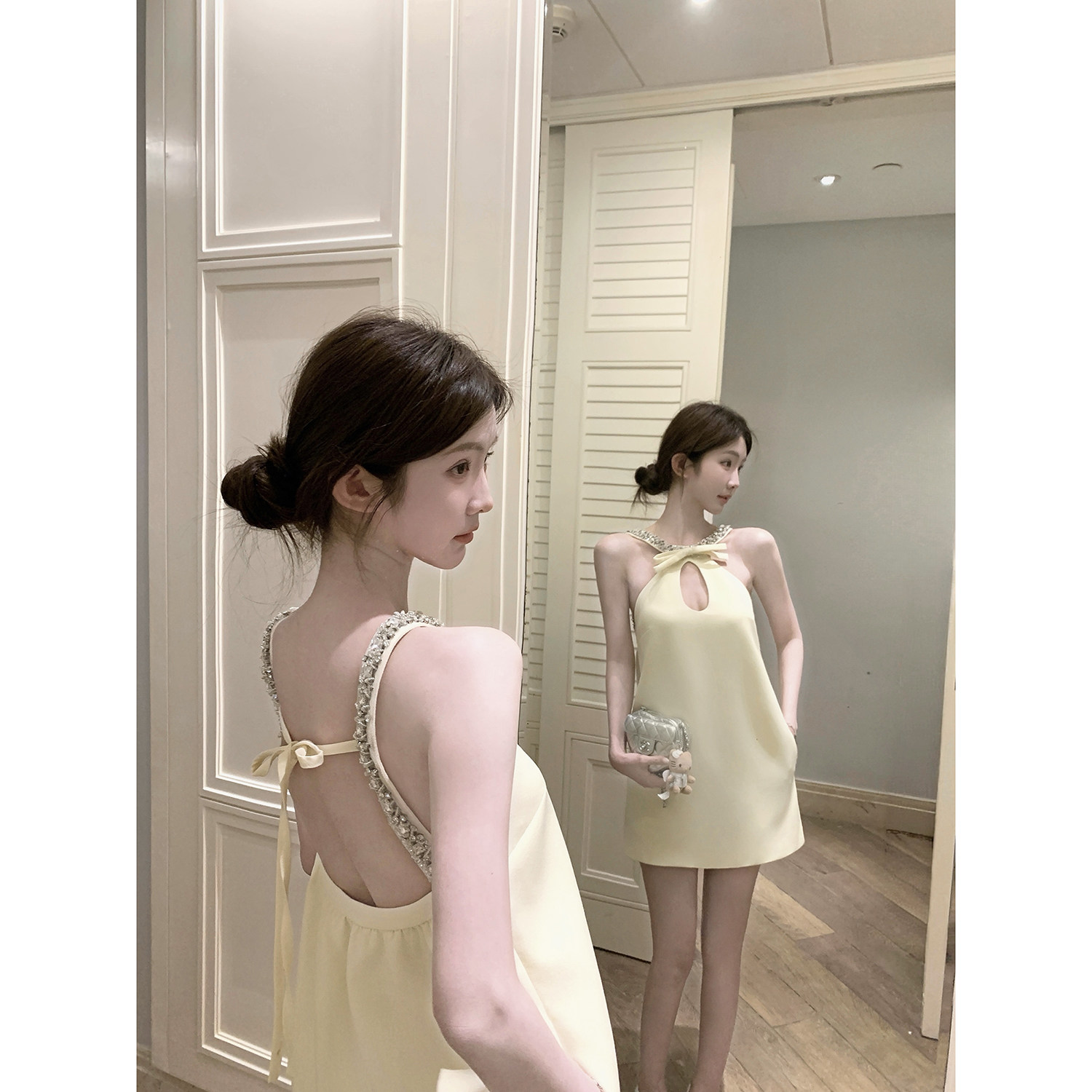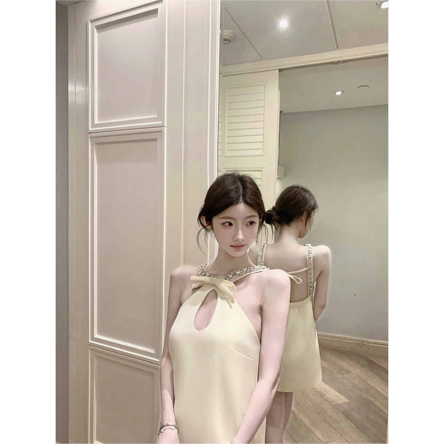 jijilulu积极璐 公主吊带裙性感小心机露背旅游裙子 miu系千金