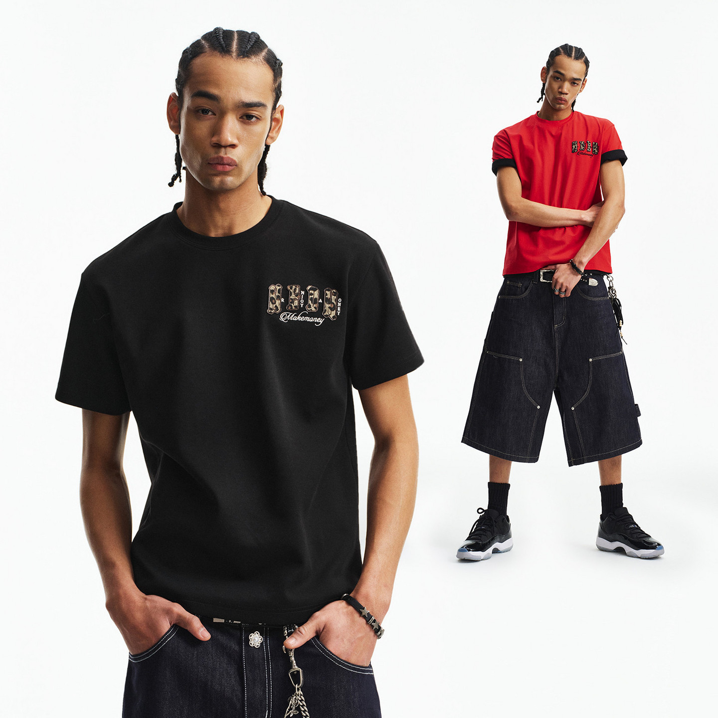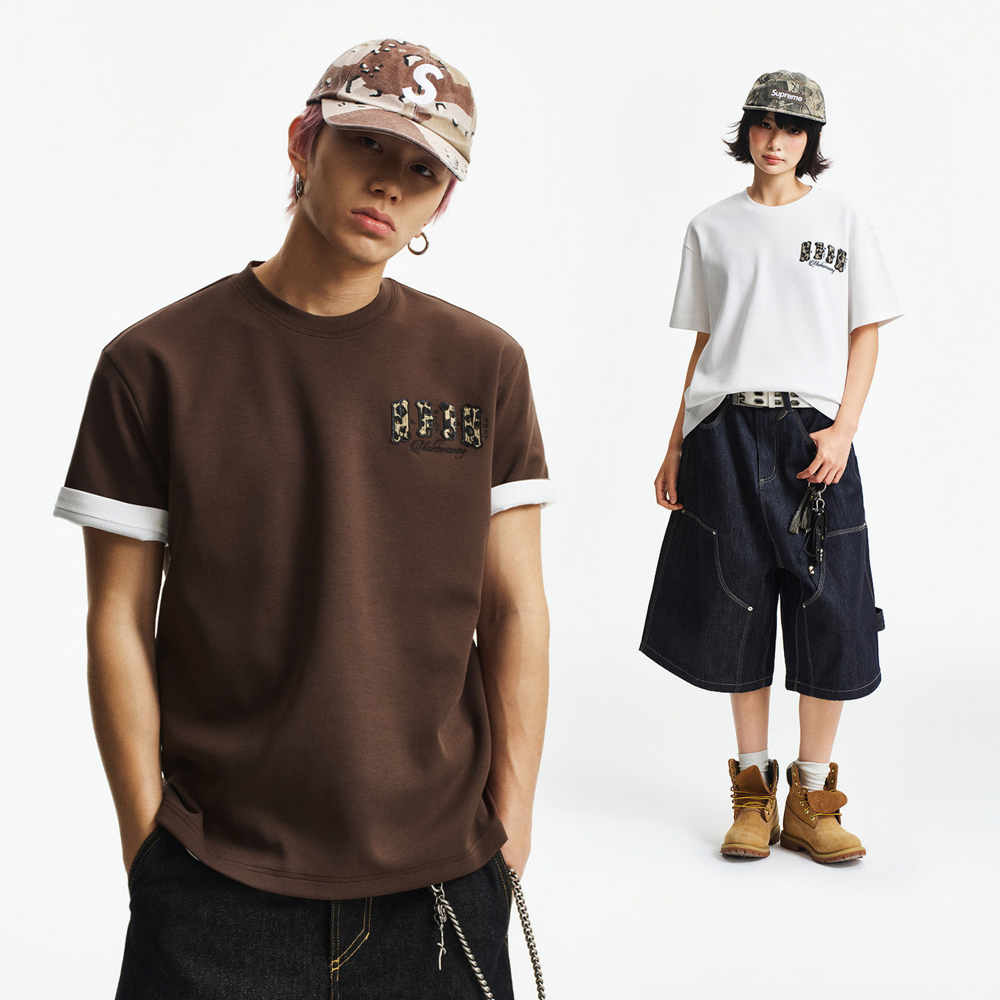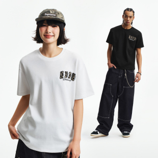 MEDM 街头百搭宽松情侣T恤夏 果冻空气棉双层皮小四字休闲圆领短袖