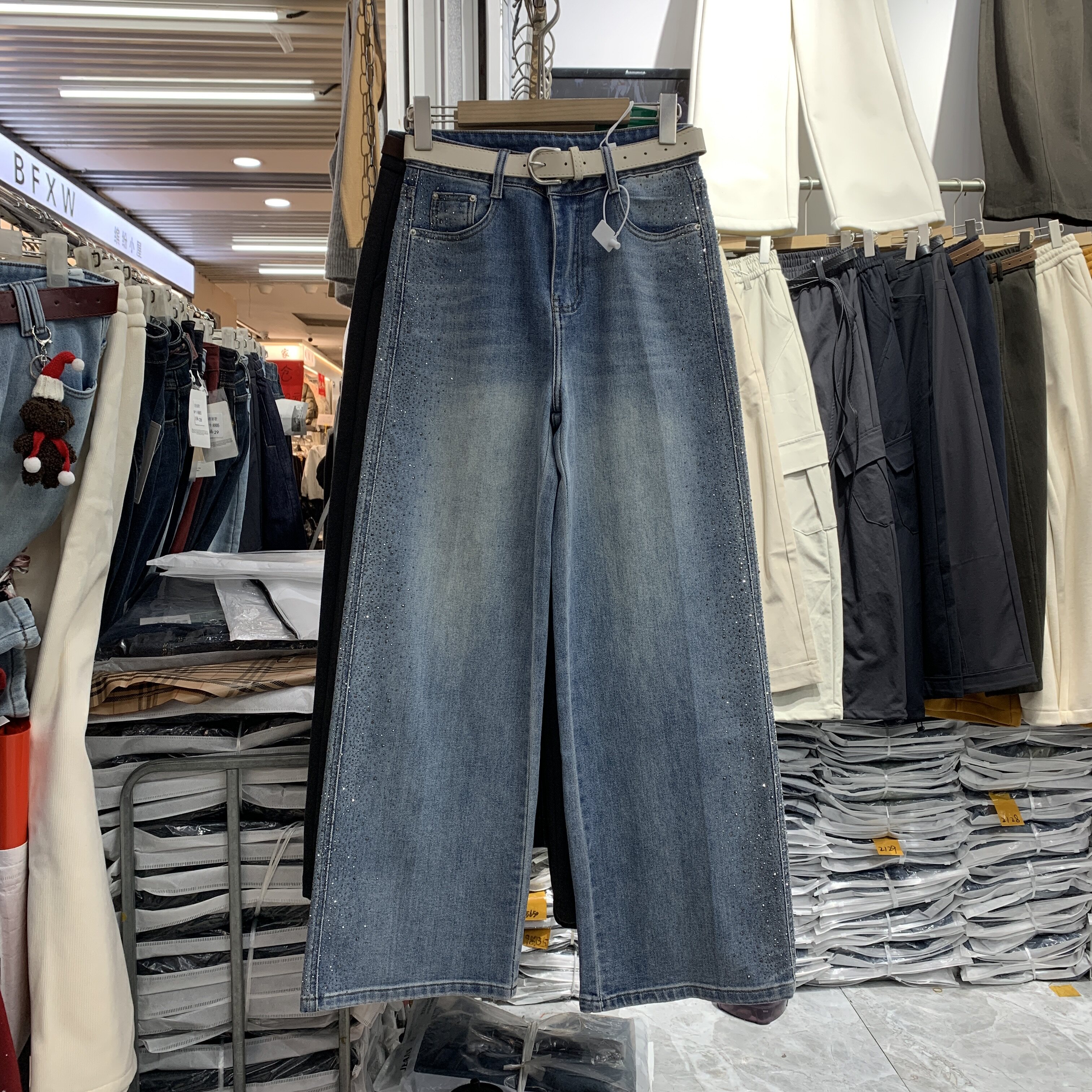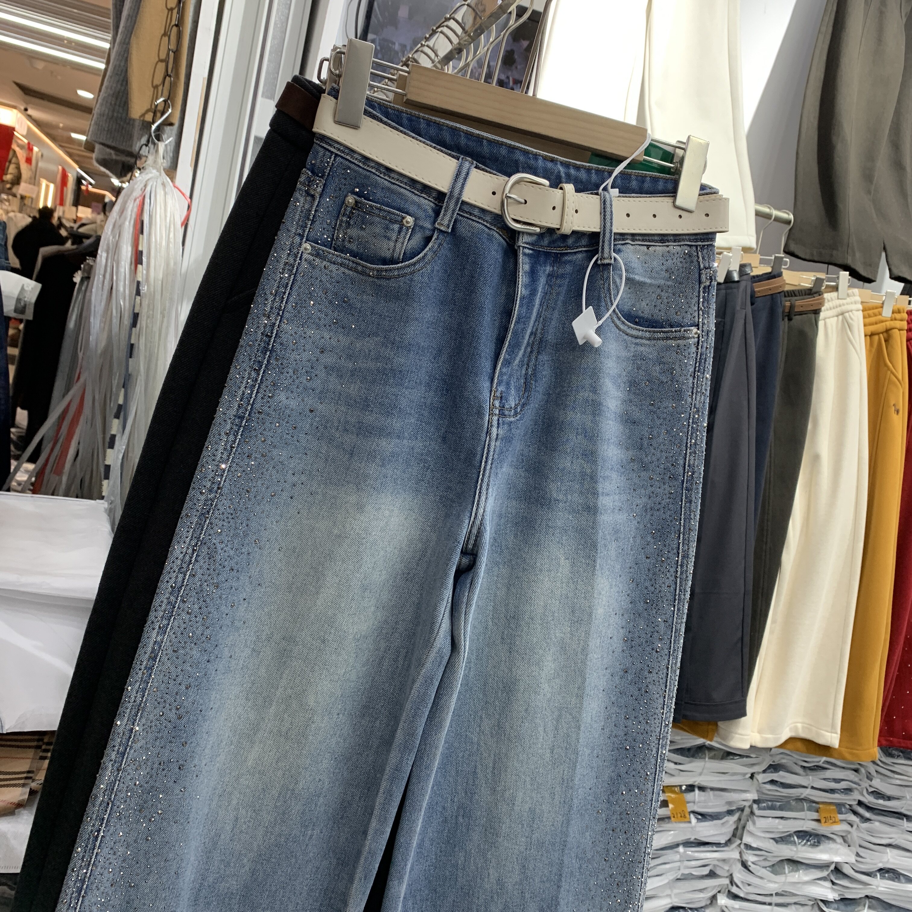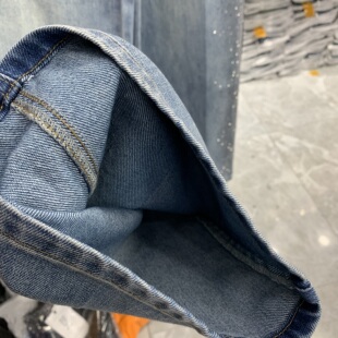 新高腰拖地牛仔长裤 女2026春装 阔腿裤 梦佳瑶7506重工侧边烫钻窄版