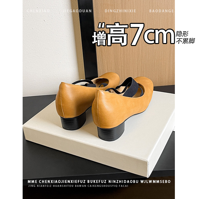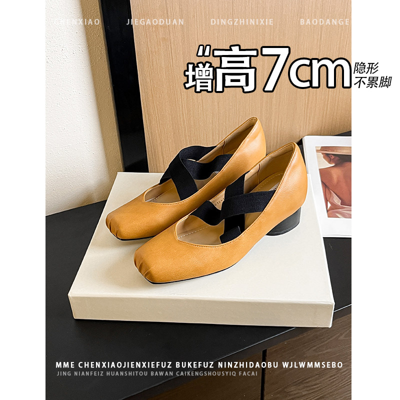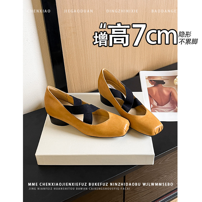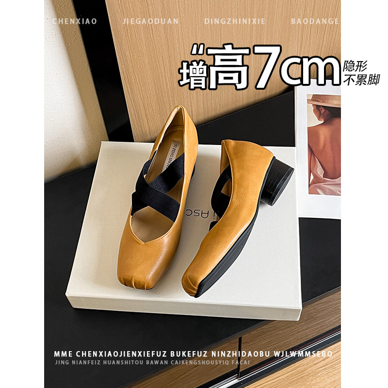 套脚浅口单鞋 2026春夏新款 女 内增高7CM方头褶皱玛丽珍鞋 不累脚