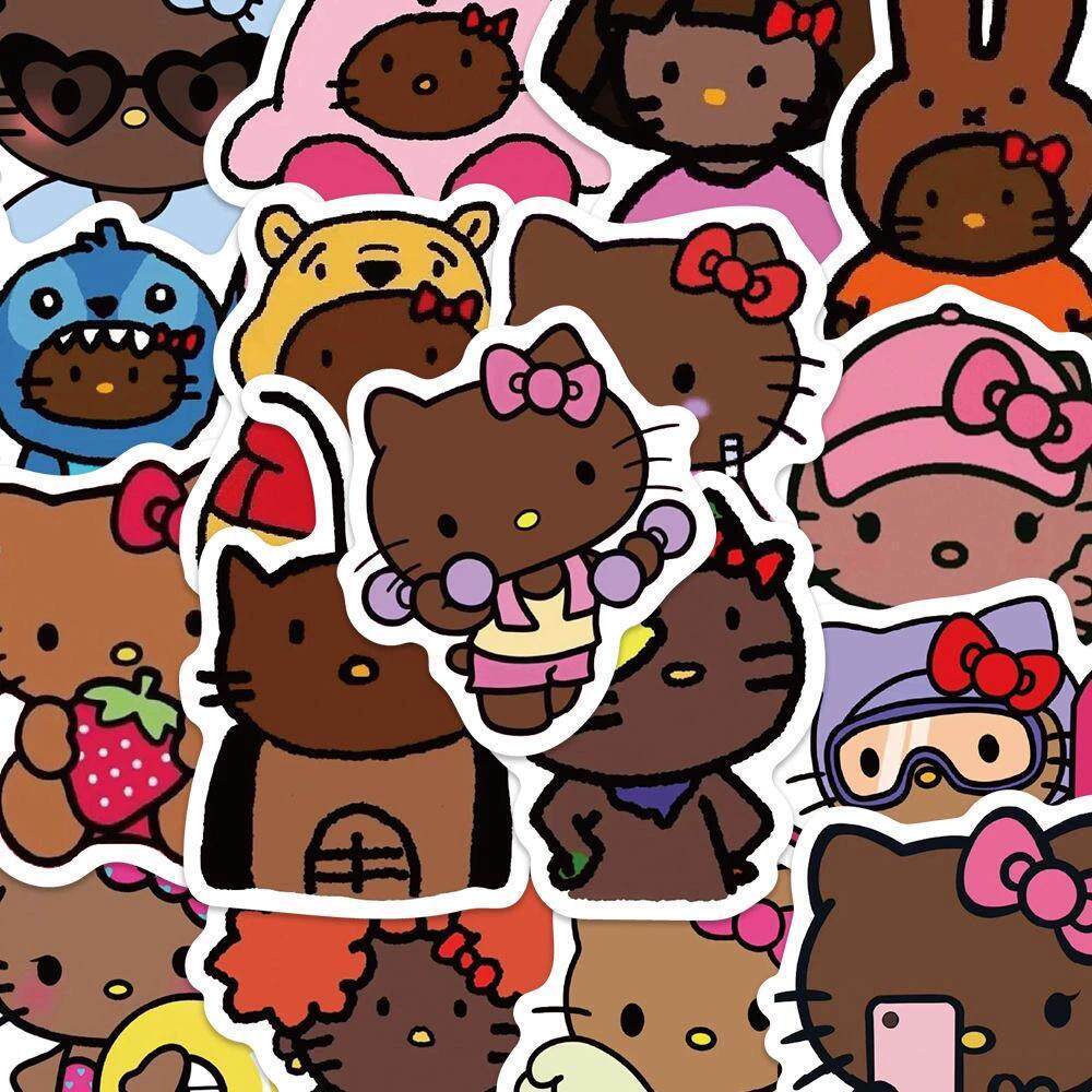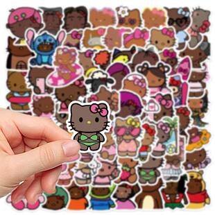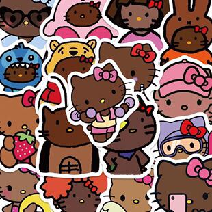 132张黑皮Kitty贴纸卡通创意手机壳手账笔记本电脑拉杆箱装 饰贴画