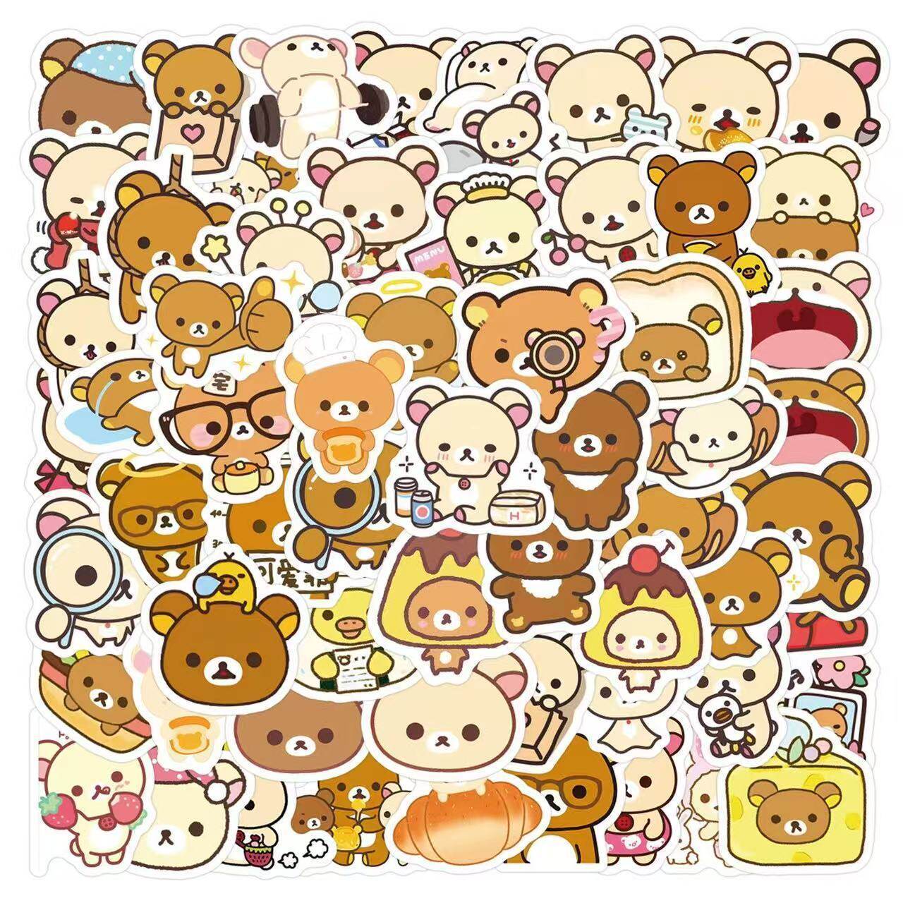 可爱卡通轻松熊和熊妹手账贴纸204张拉杆箱手机笔记本电脑装 饰DIY
