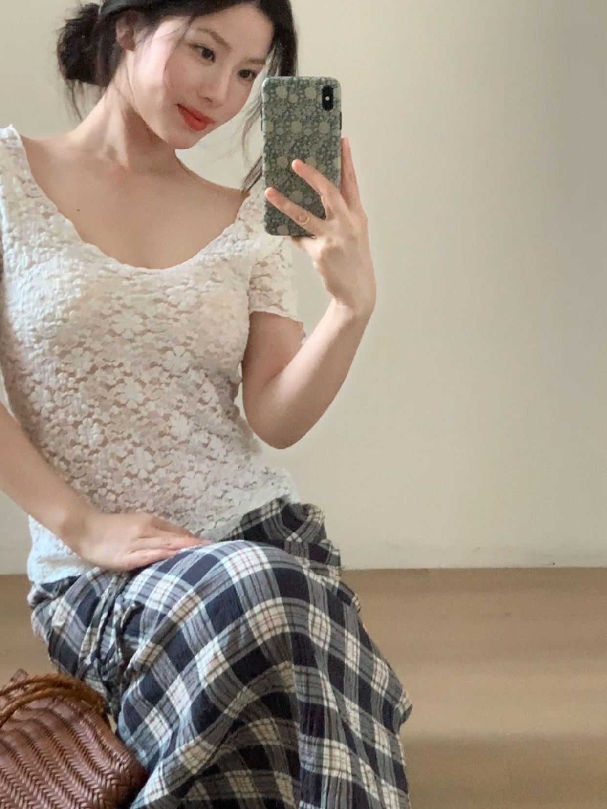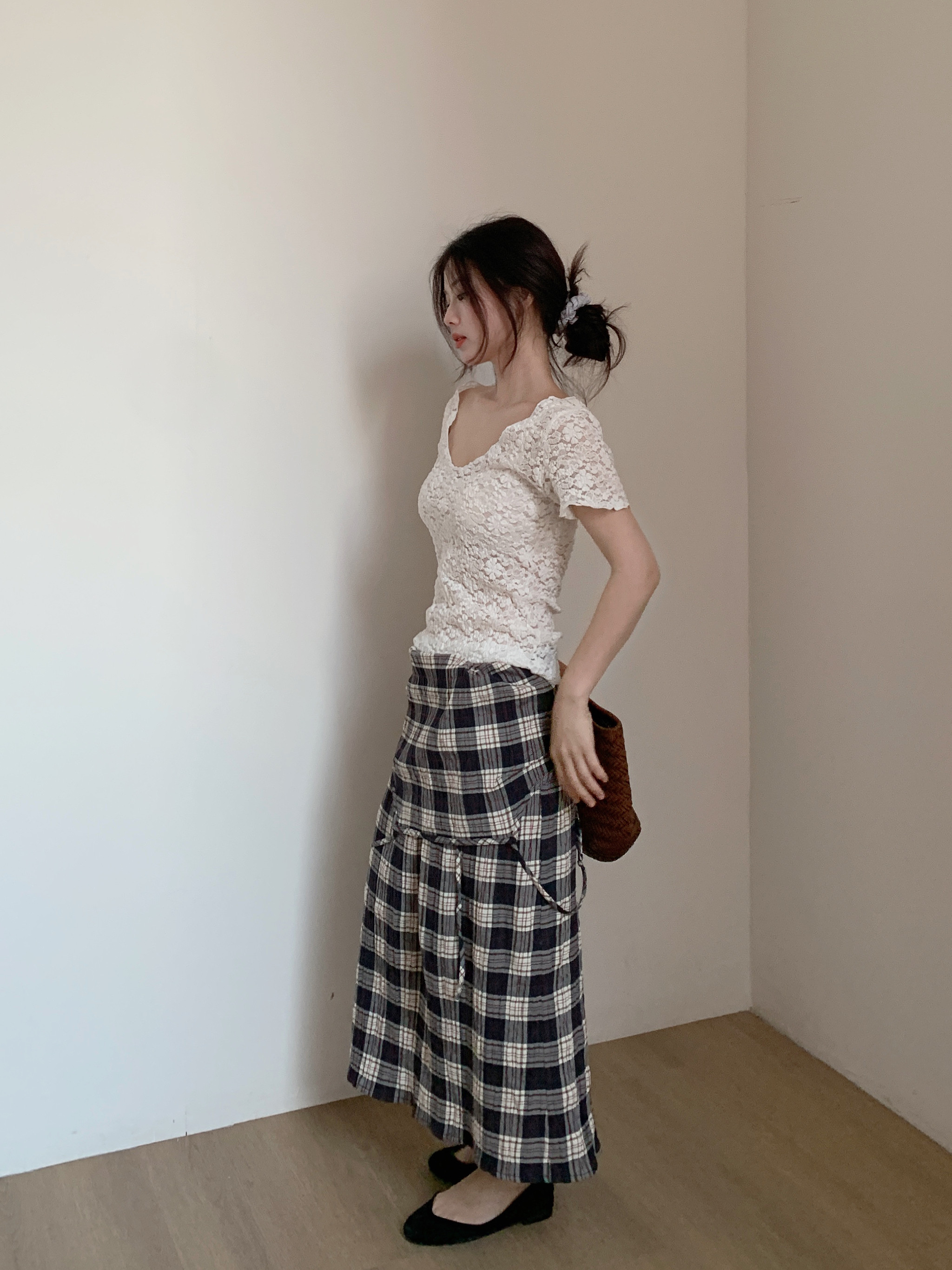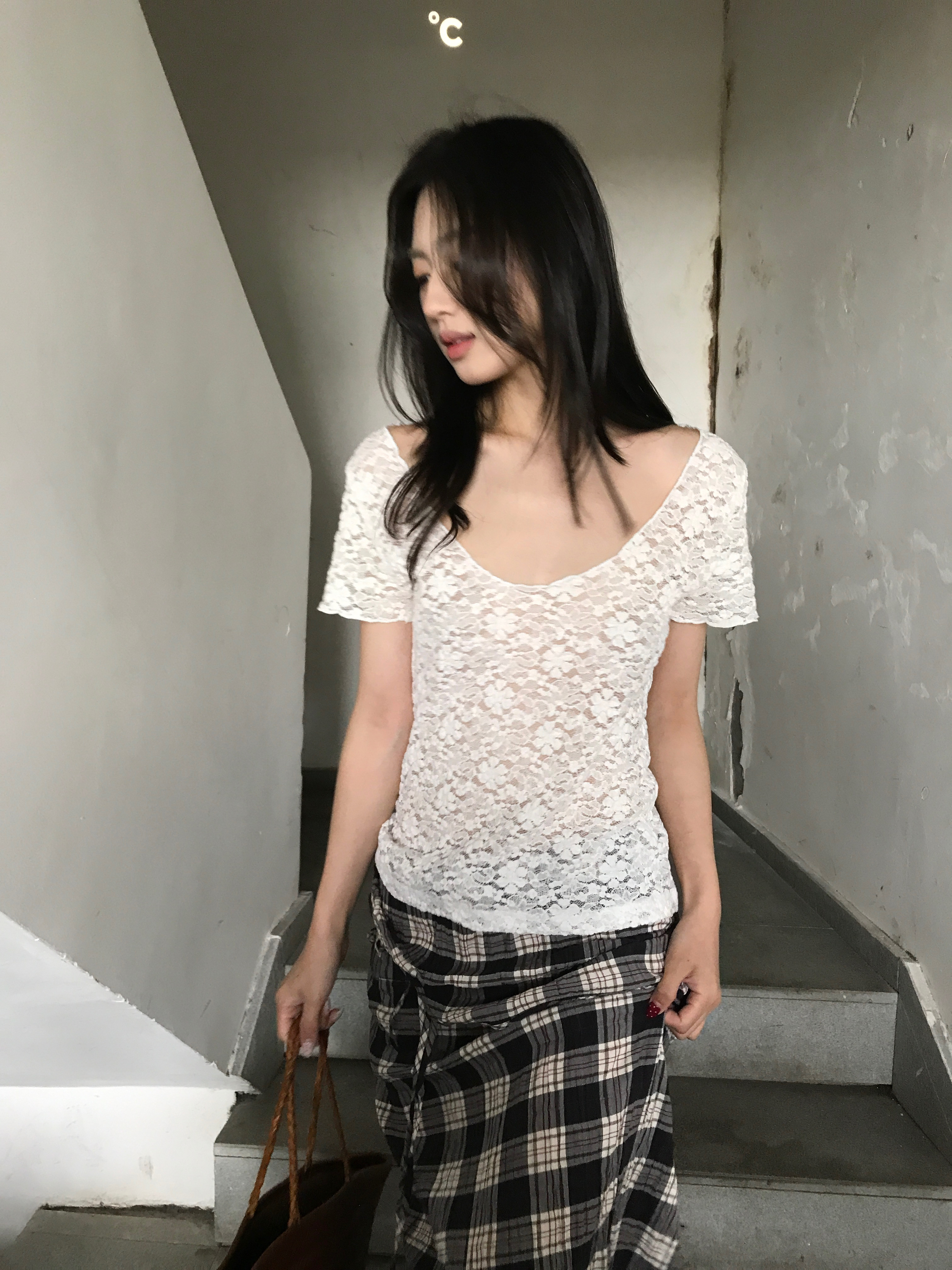 T恤 纯欲精致短袖 鱼没放 大领口蕾丝打底衫