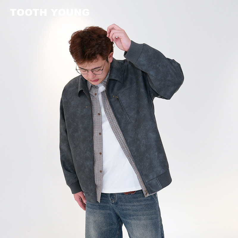 春季 大码 先锋 复古宽松皮衣薄款 显瘦PU外套 美式 郑一爱穿搭