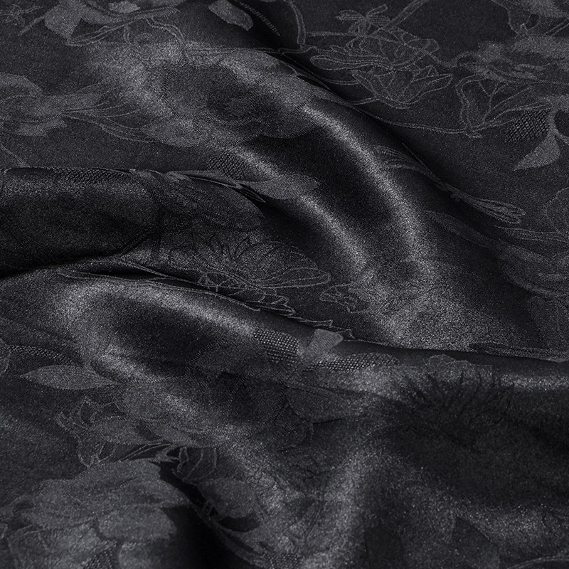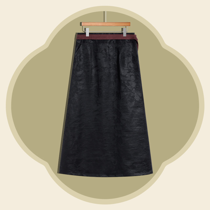 国风桑蚕丝半裙 非遗香云纱新中式 中国丝绸隆鹊 黑底玉兰蜻蜓裹裙