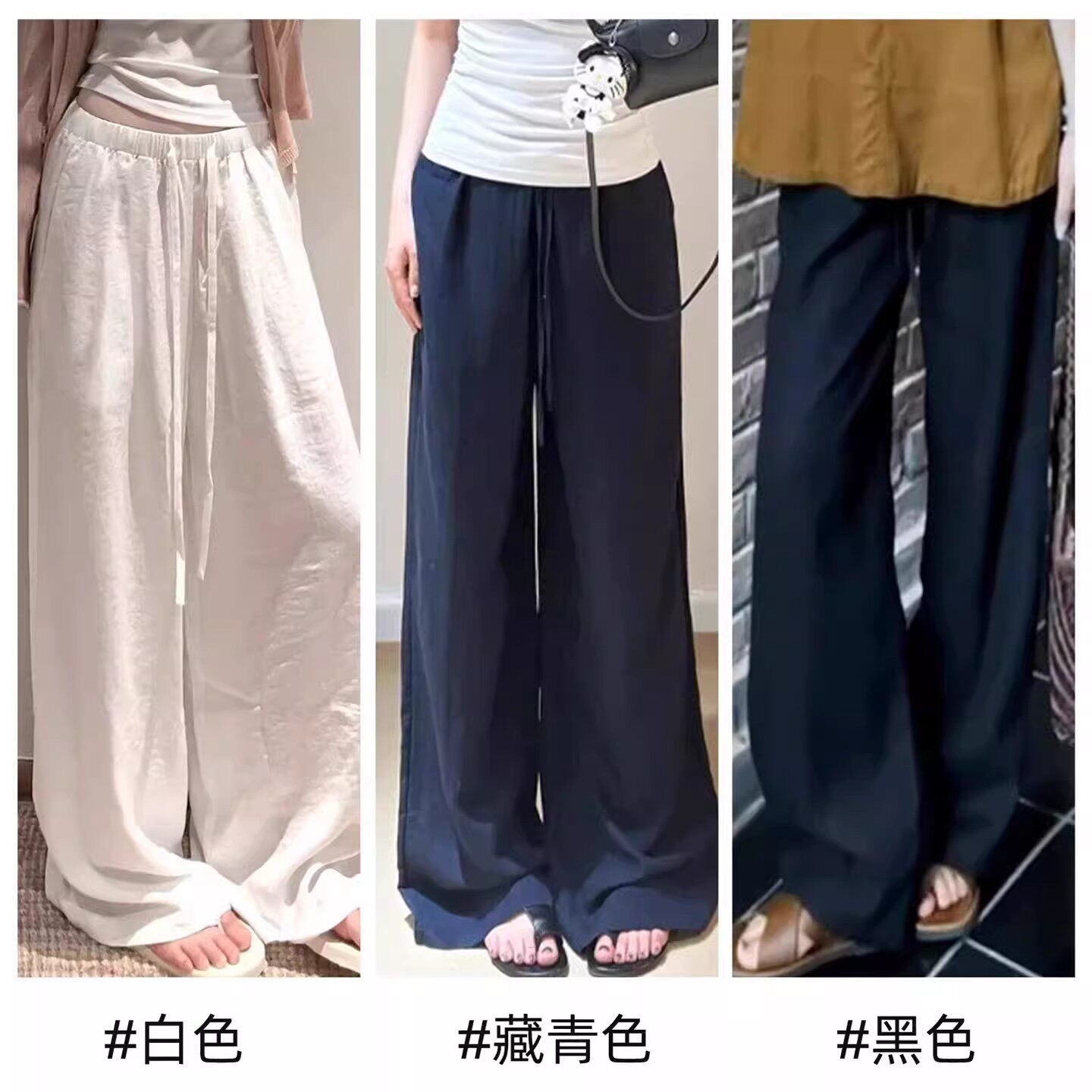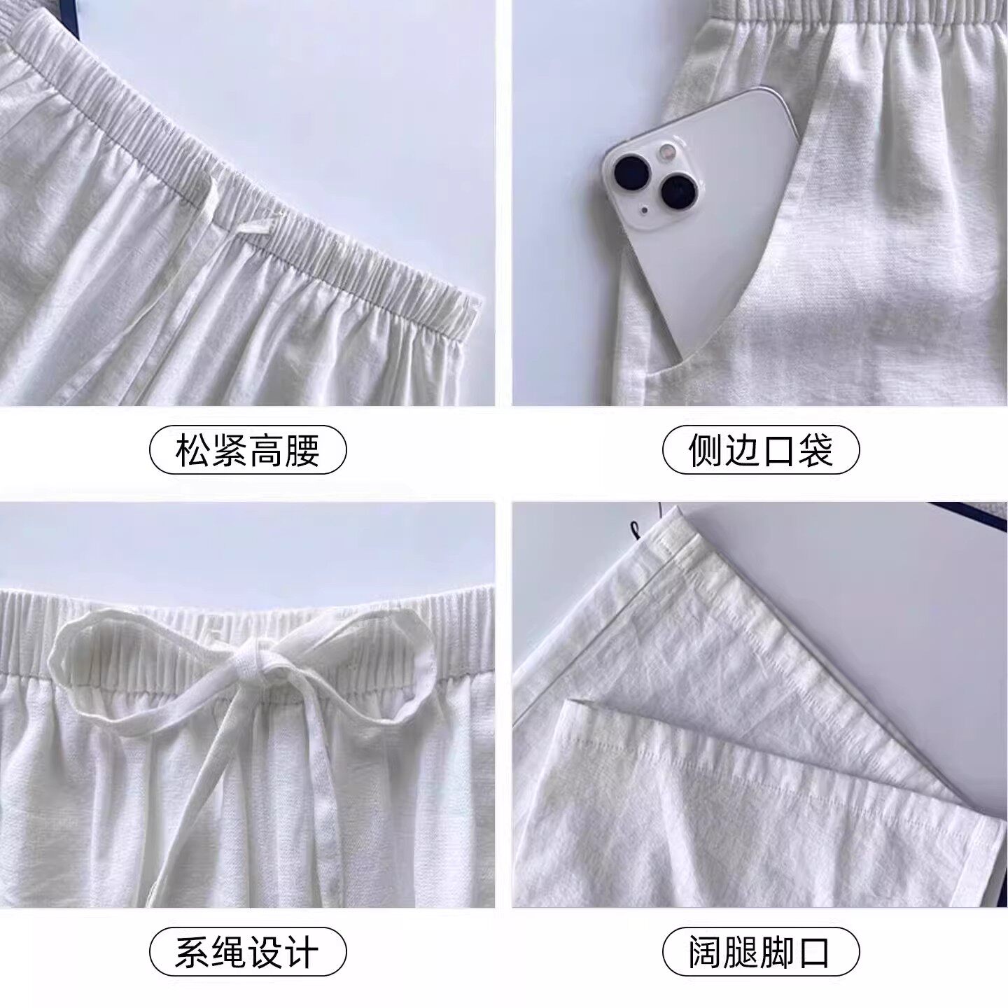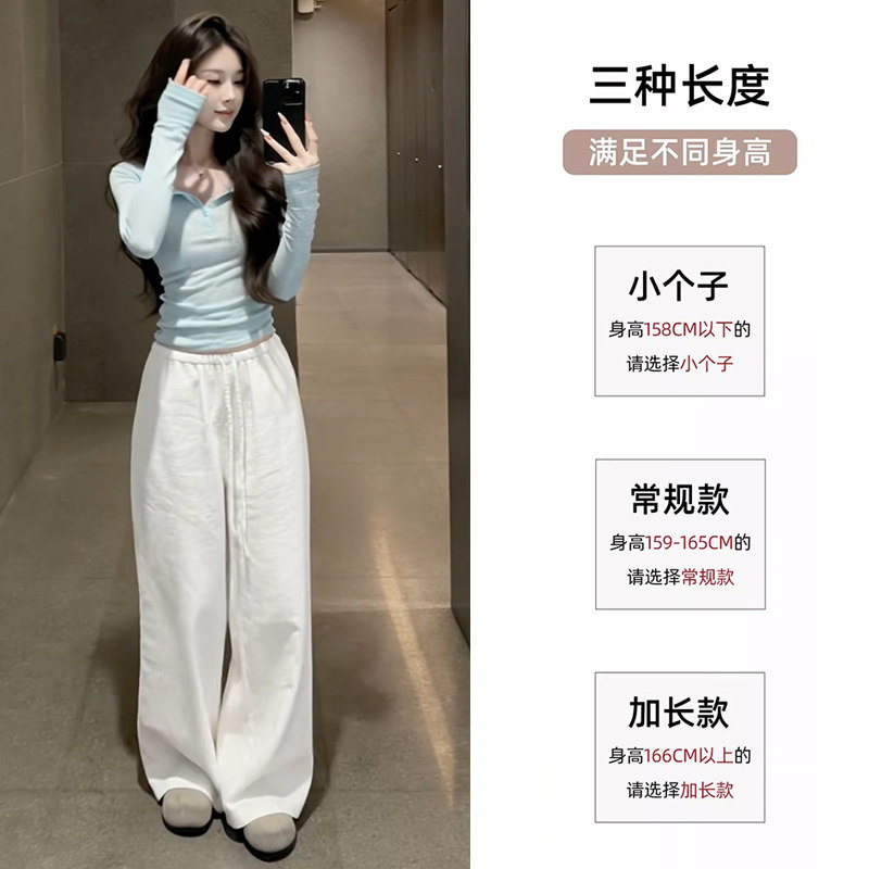 小个子老钱风休闲裤 白色棉麻阔腿裤 高腰宽松直筒裤 2026新款 女夏季