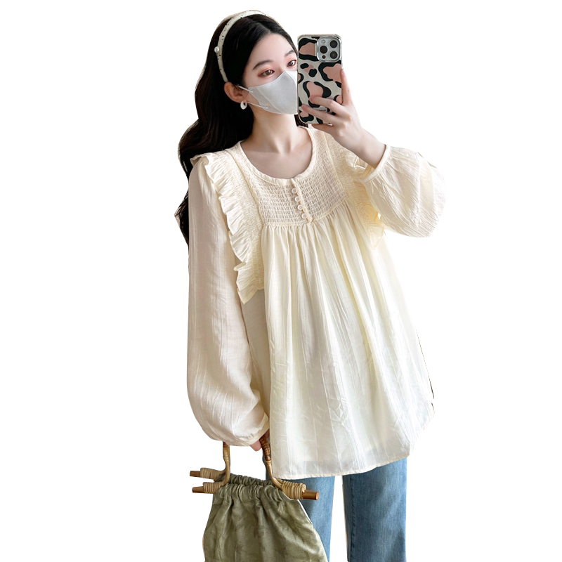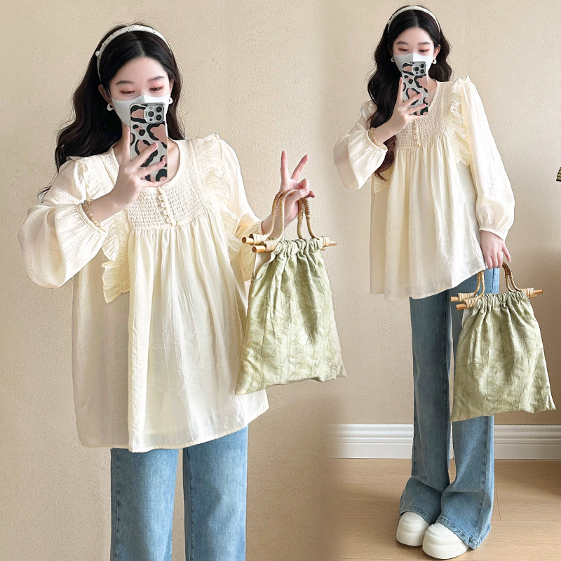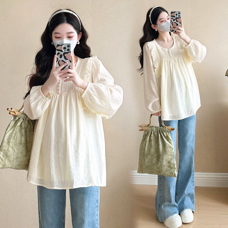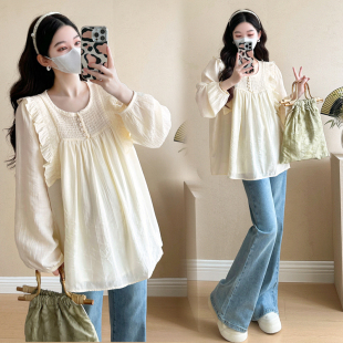 2026新款 娃娃衫 减龄长袖 婧麒孕妇装 上衣T恤女春装 春秋季 韩版 衬衫