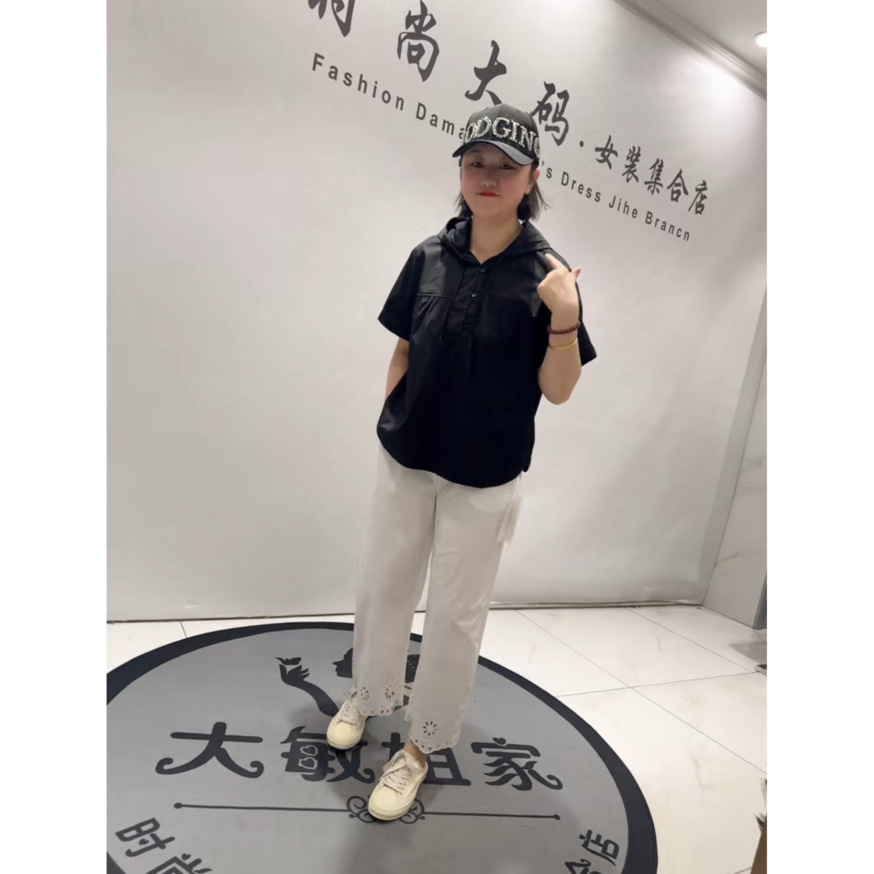 通勤立体剪裁连帽T恤小衫 26326天骄一生水新款 女装 加肥大码 初夏季