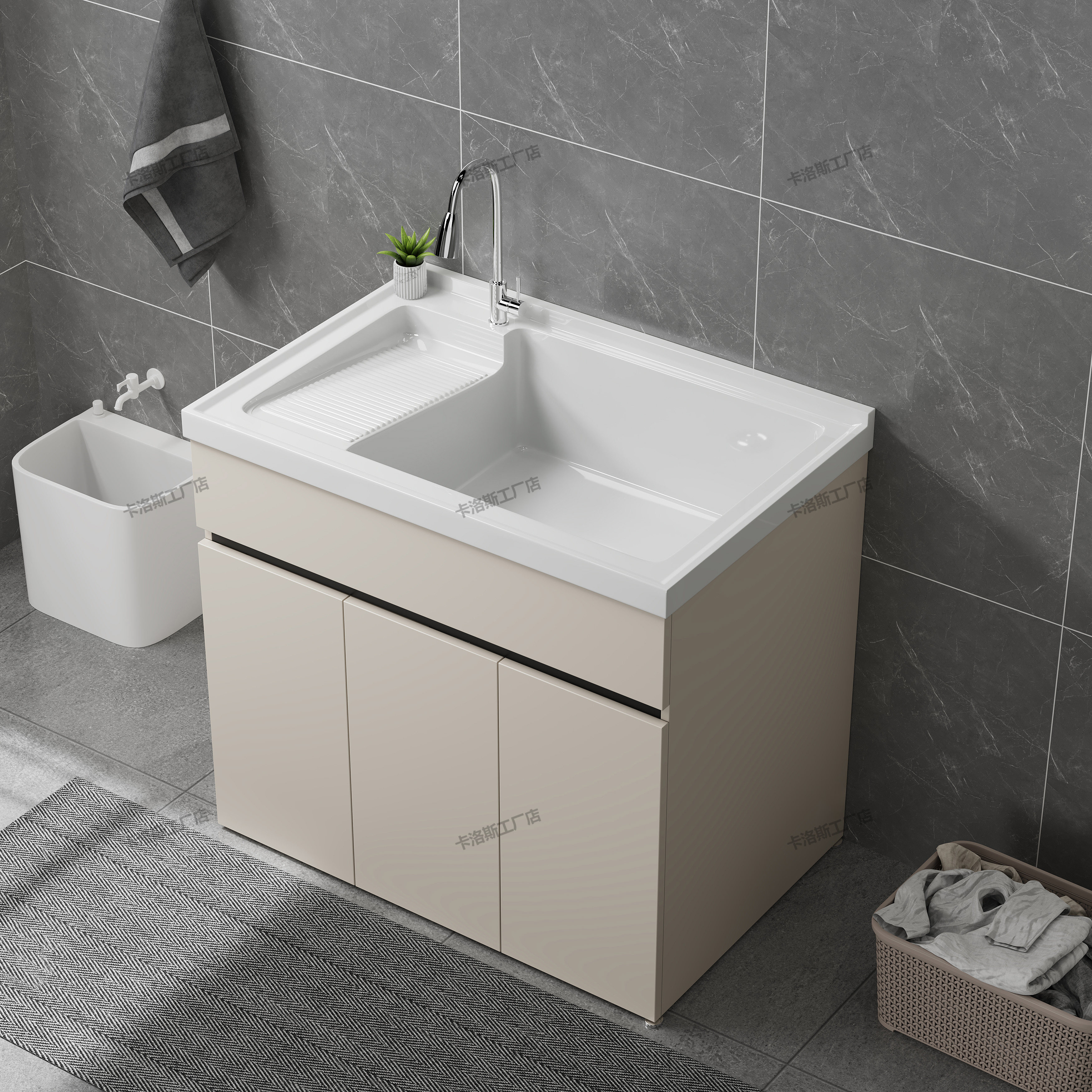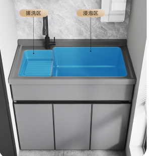 石英石洗衣池台盆一体洗衣台盆池一体带搓板洗衣柜蜂窝铝阳柜家用