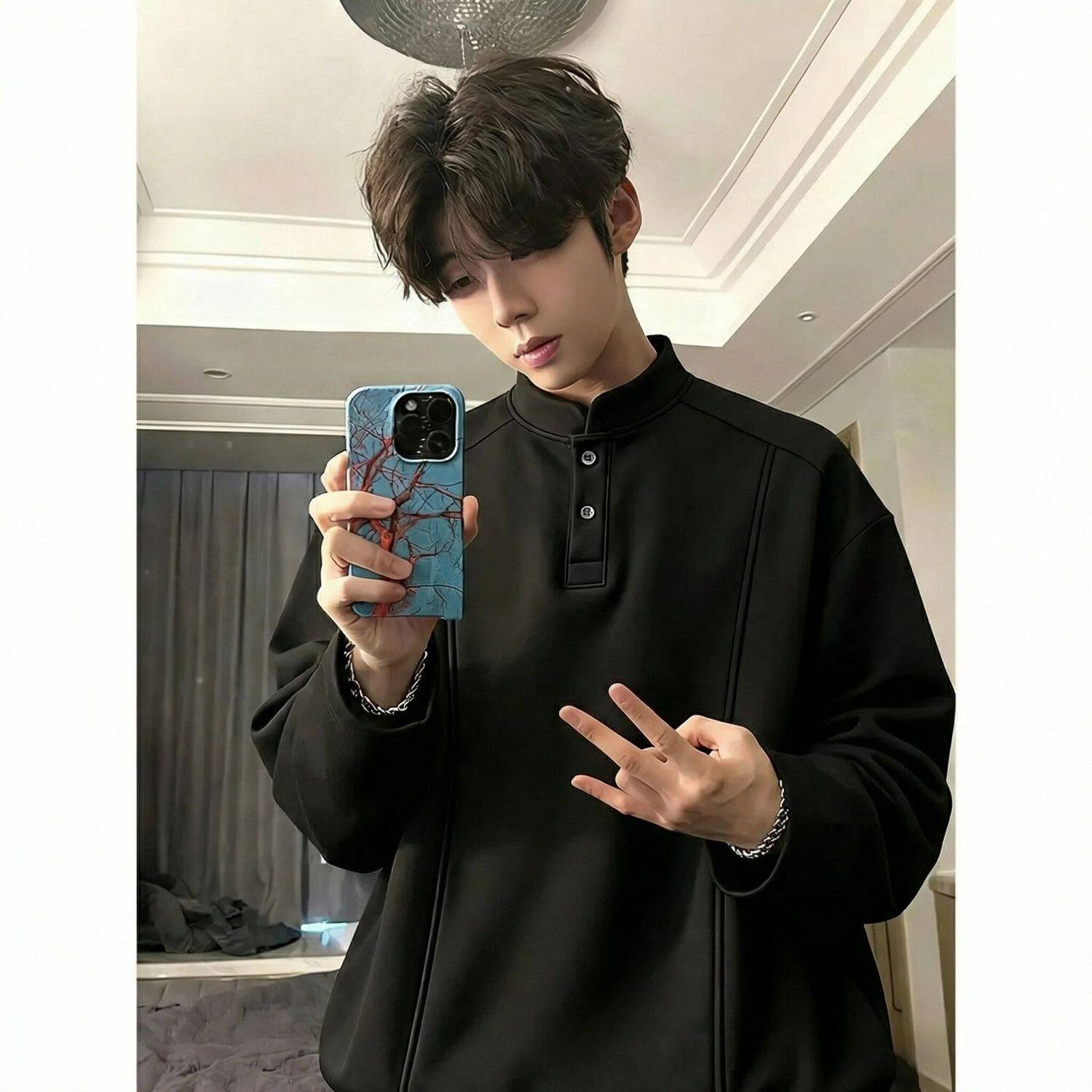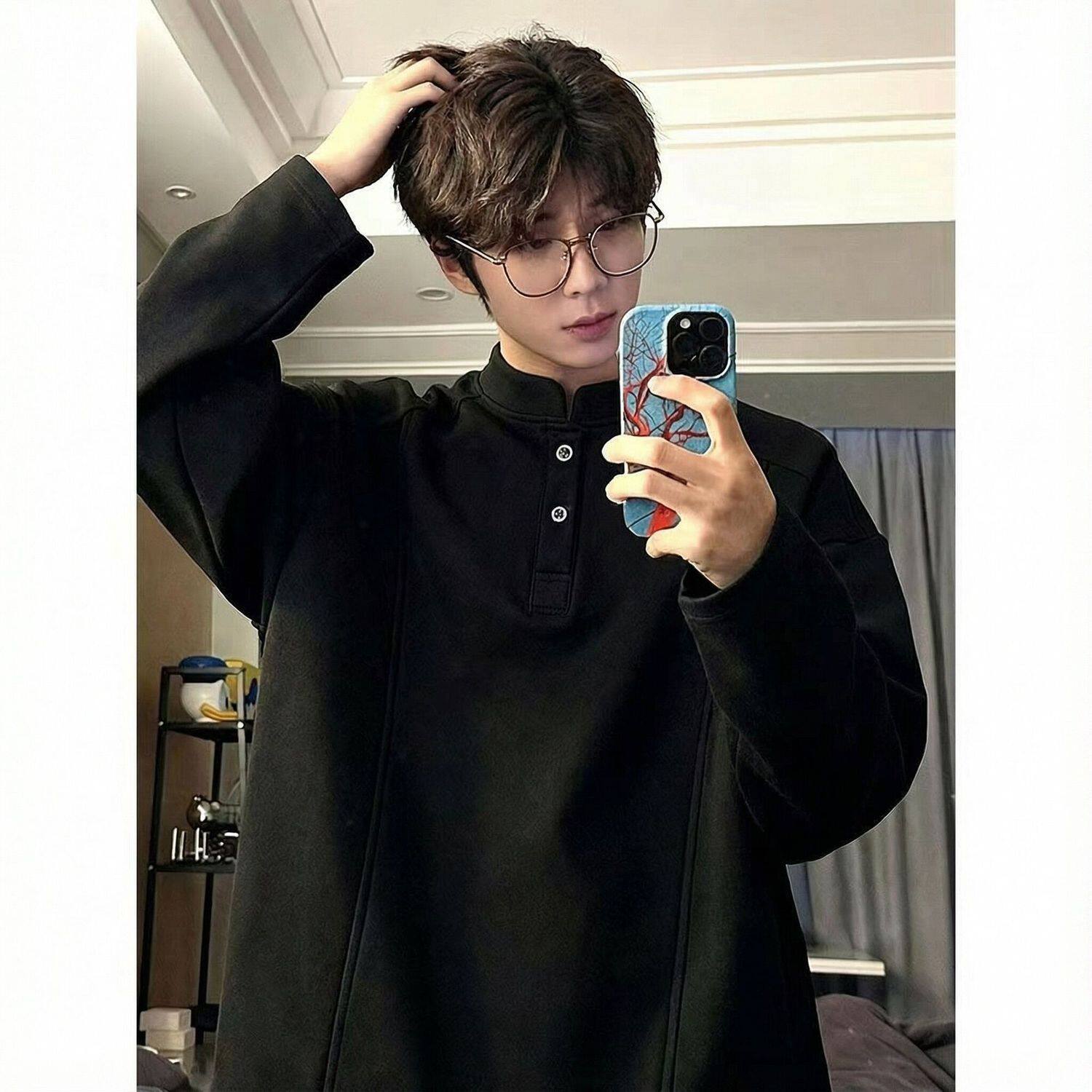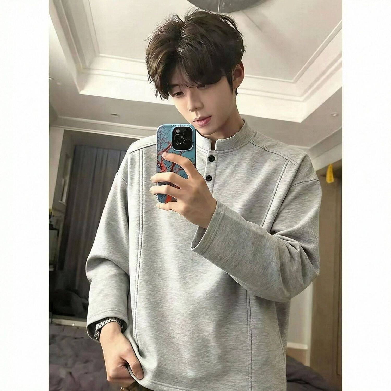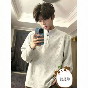 重磅帅气卫衣内搭打底衫 2026新款 t恤男春秋季 亨利领长袖 白色美式