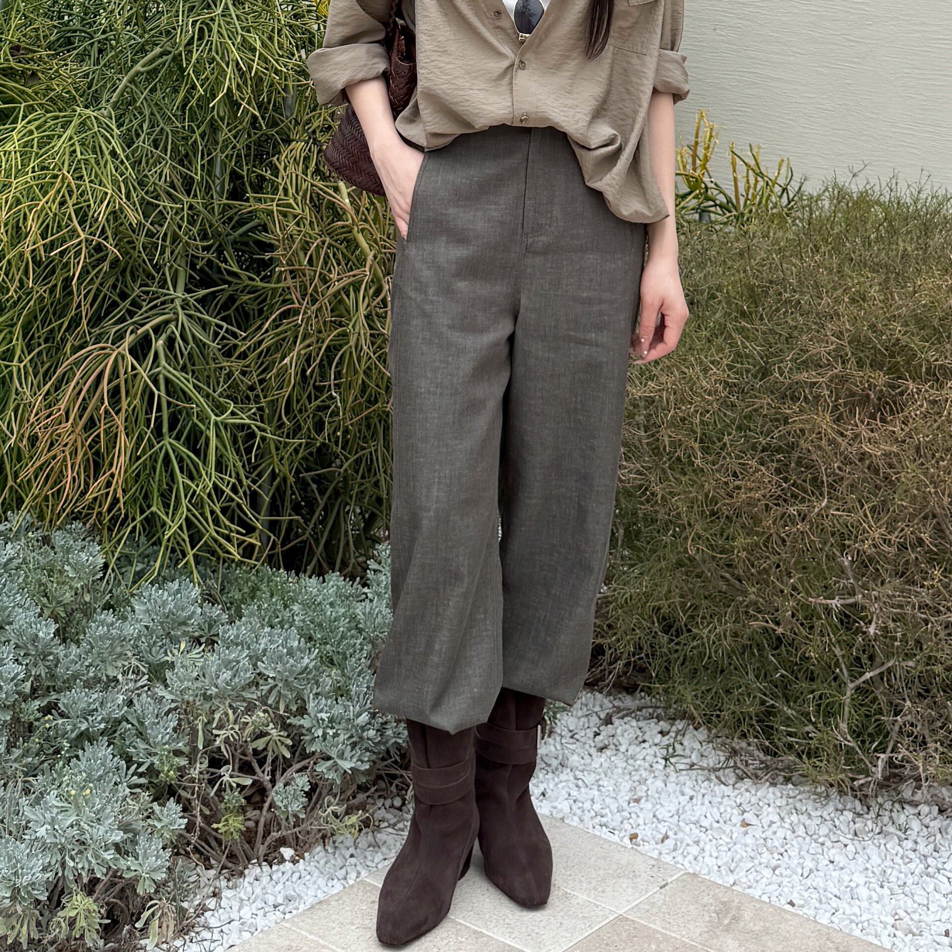 MY6769 显瘦复古直筒百搭萝卜休闲裤 止水·息声 棉麻竹节感面料