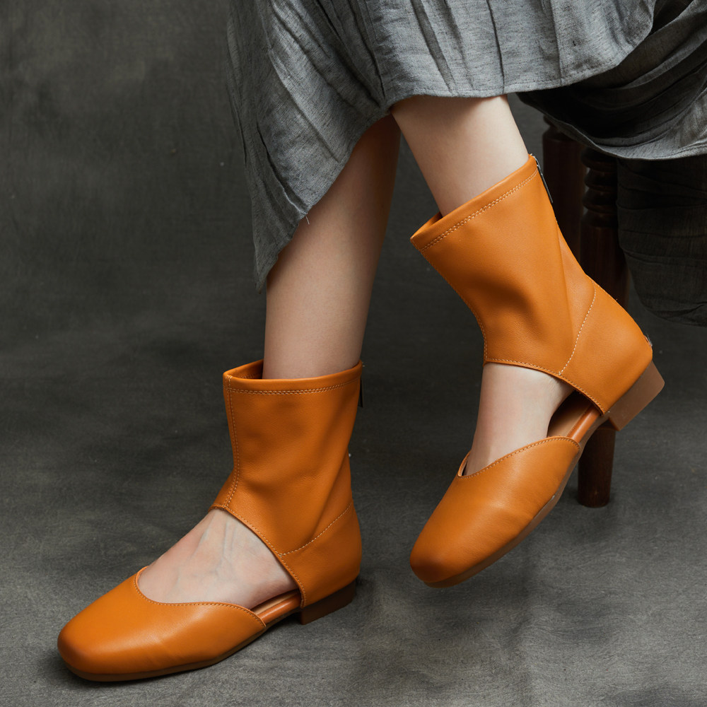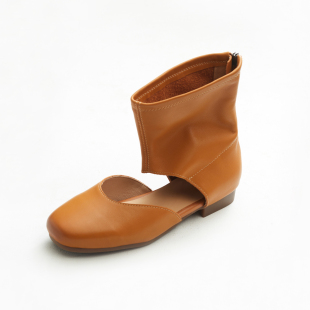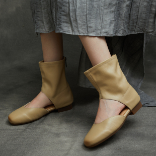 英伦手工真皮平跟软底中帮平底罗马凉鞋 包头凉靴2026春夏季 新款