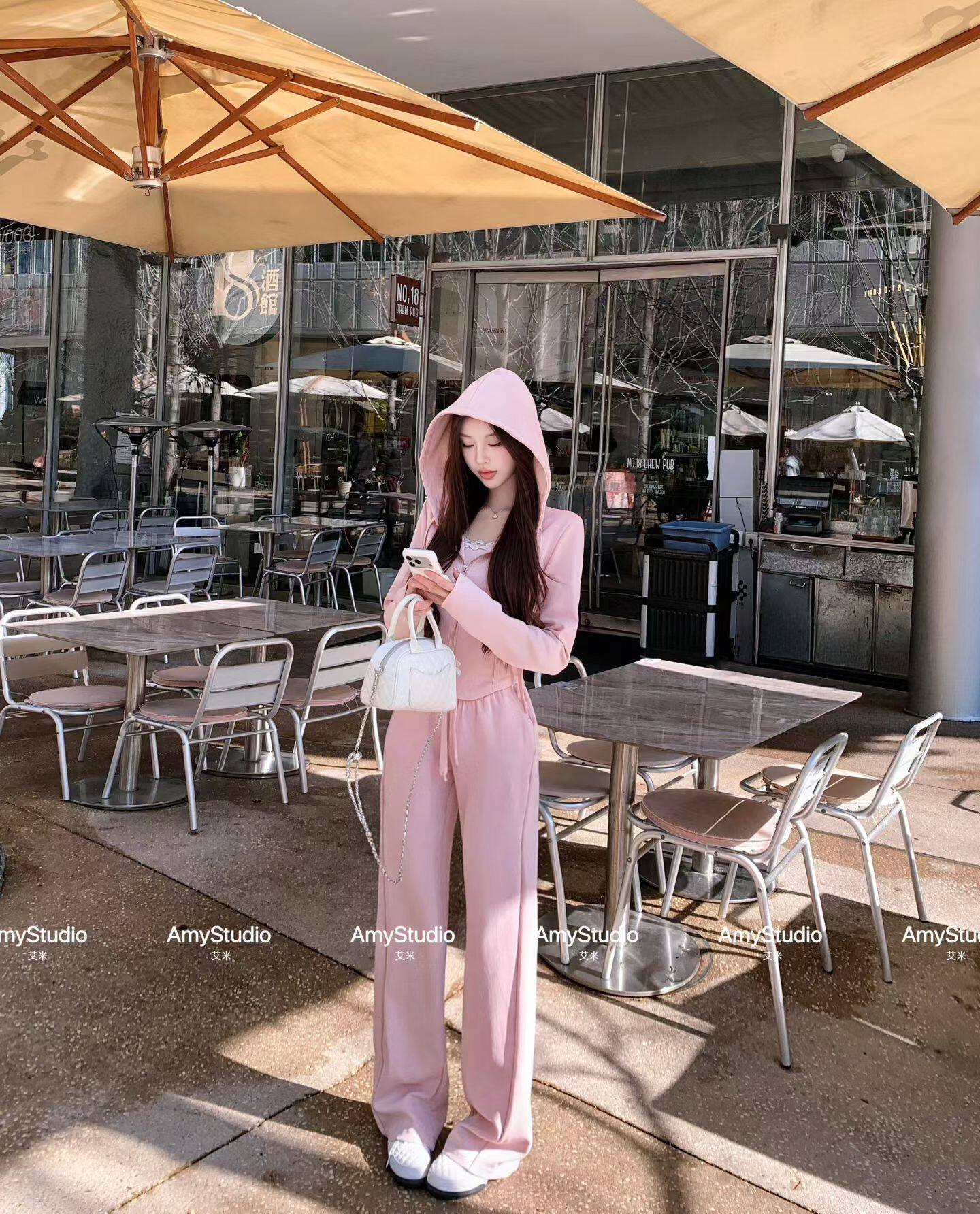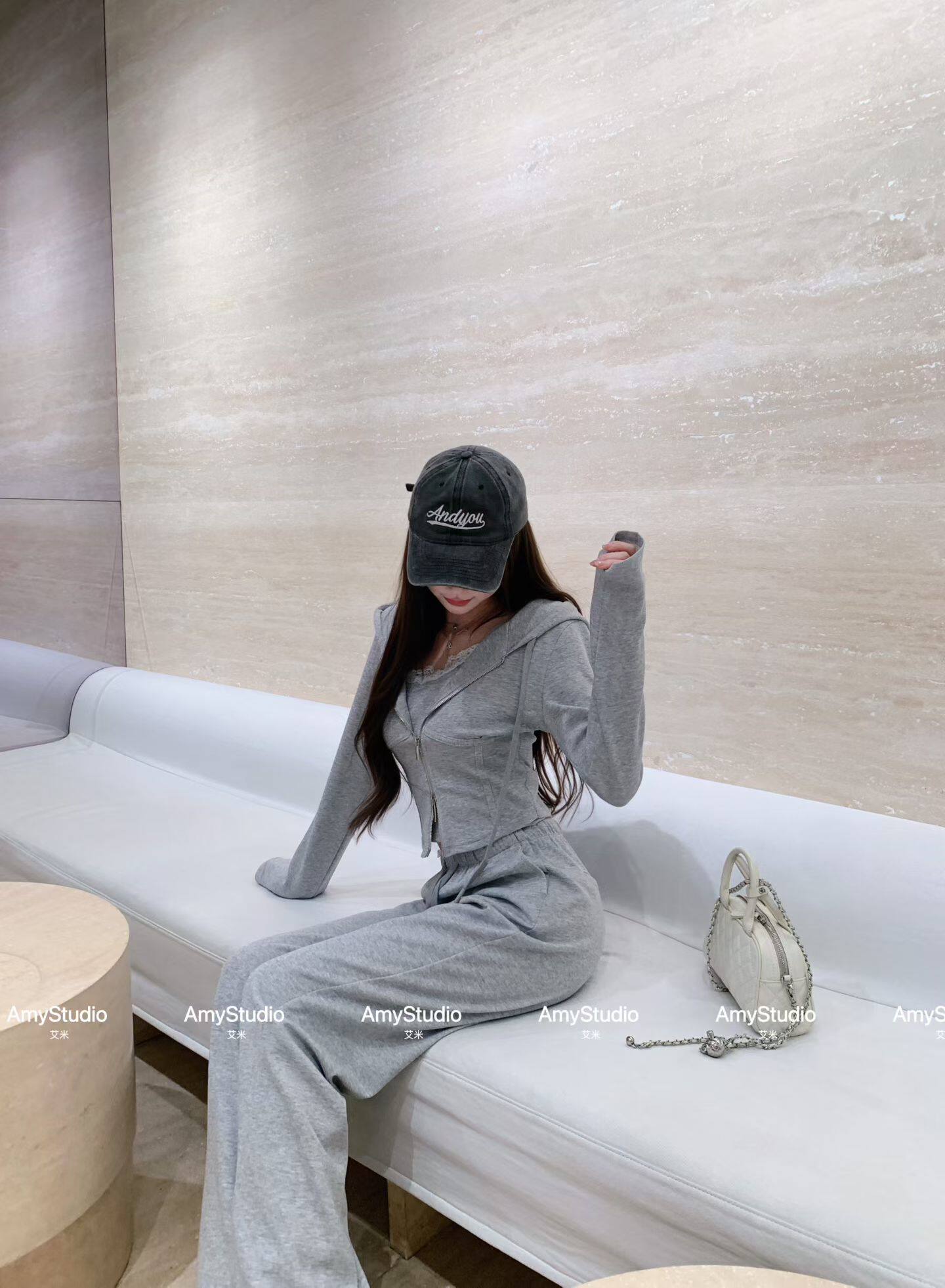 女连帽卫衣搭阔腿裤 艾米Amy正版 休闲运动套装 新款 三件套 2026春季