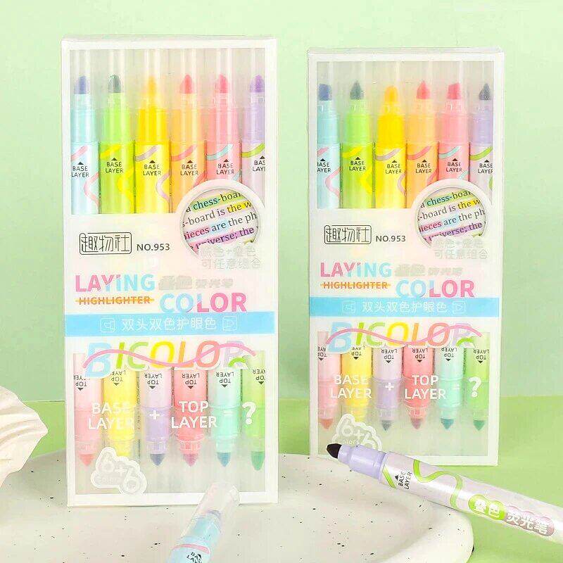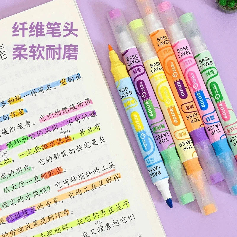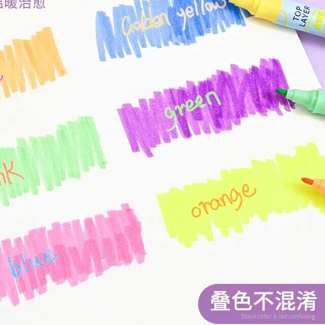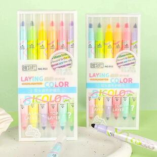 ins叠色双头荧光笔划重点笔学生彩色记号笔大容量高颜值 新款 手账手帐笔多色莹光萤光笔可叠色 开学季