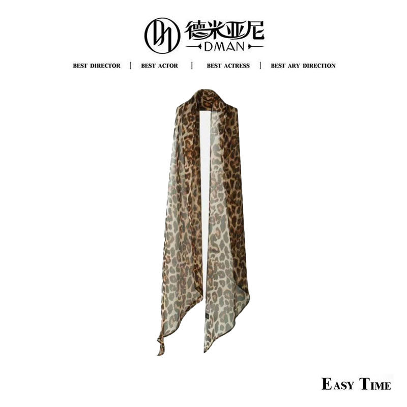 黑色波点 100桑蚕丝 豹纹时髦精飘带丝巾 米公子