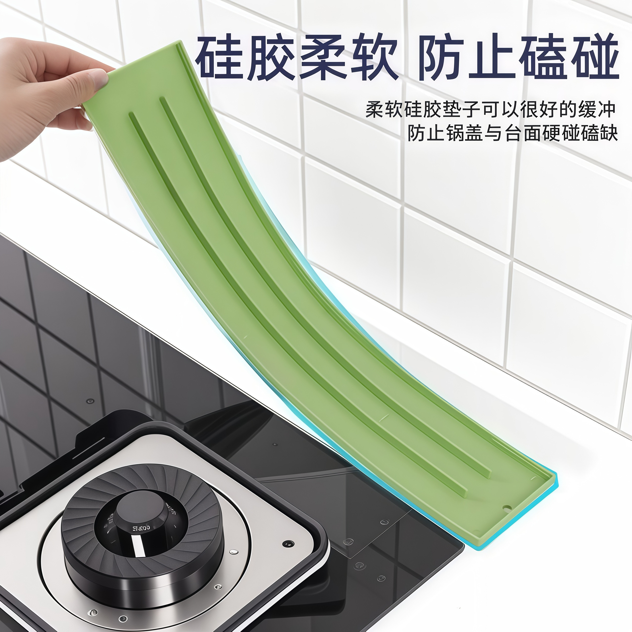 硅胶台面式 锅盖垫厨房灶台多功能窄缝锅盖收纳垫免打孔防滑沥水垫