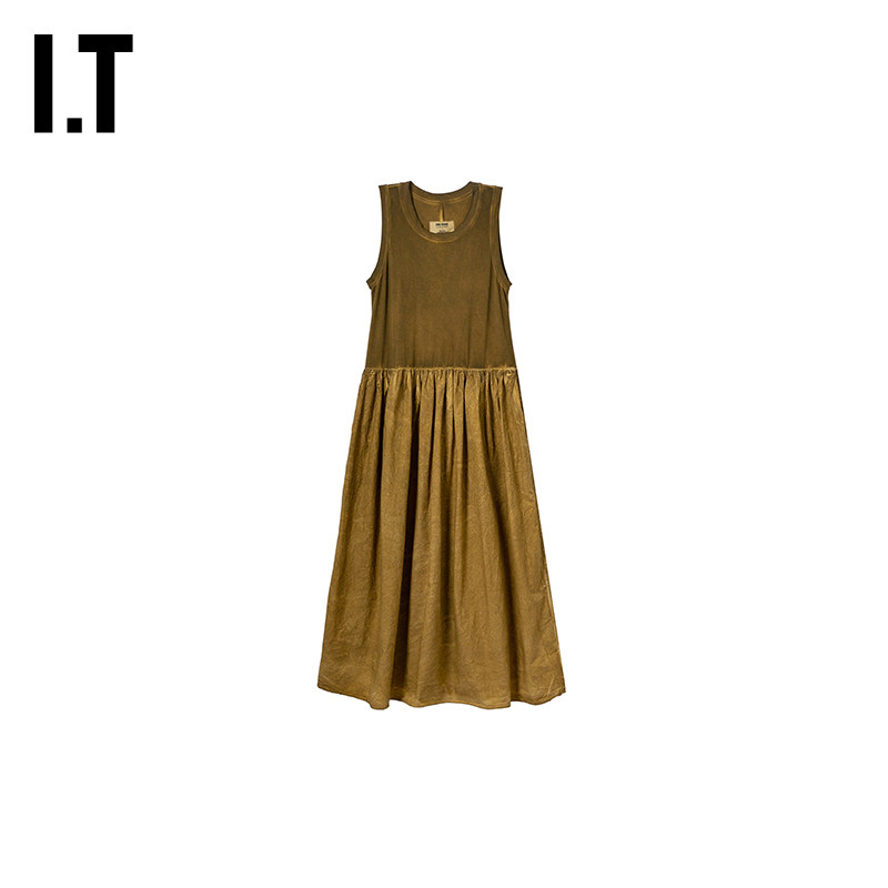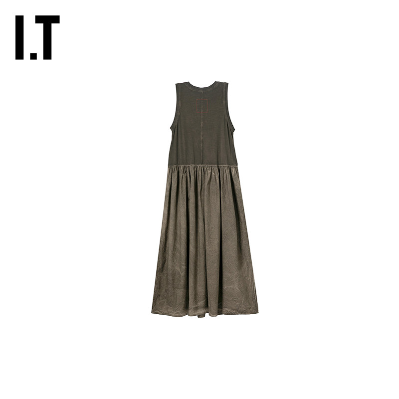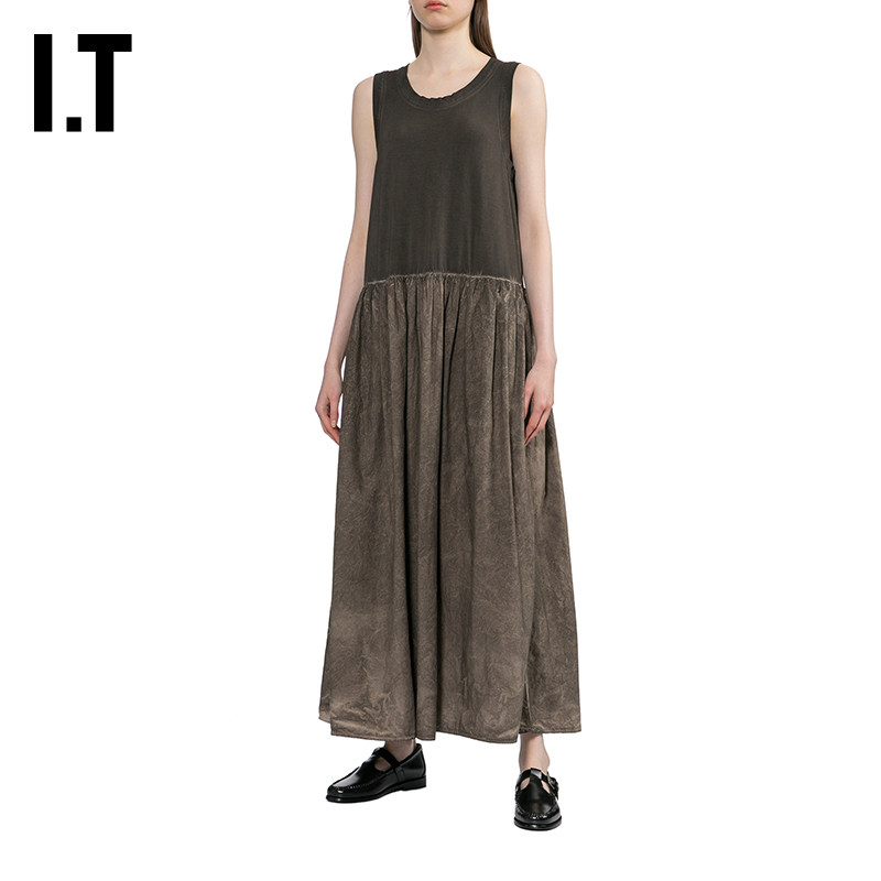 连衣裙新款 无袖 WANG女装 复古文艺风磨白做旧长裙背心裙 UMA
