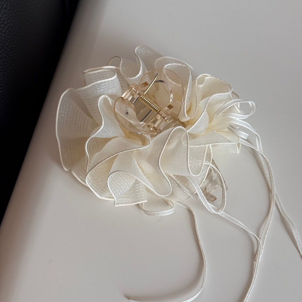 云朵花苞网纱褶皱盘发鲨鱼夹后脑勺时尚 氛围感抓夹高级感发夹A08