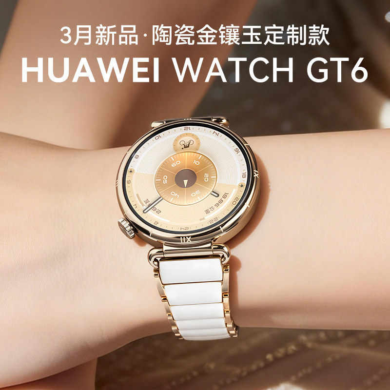 GT6智能运动蓝牙通话电话手表新款 华为手表WATCH 陶瓷白金镶玉限定女士表旗舰送女友送老婆 陶瓷限定款