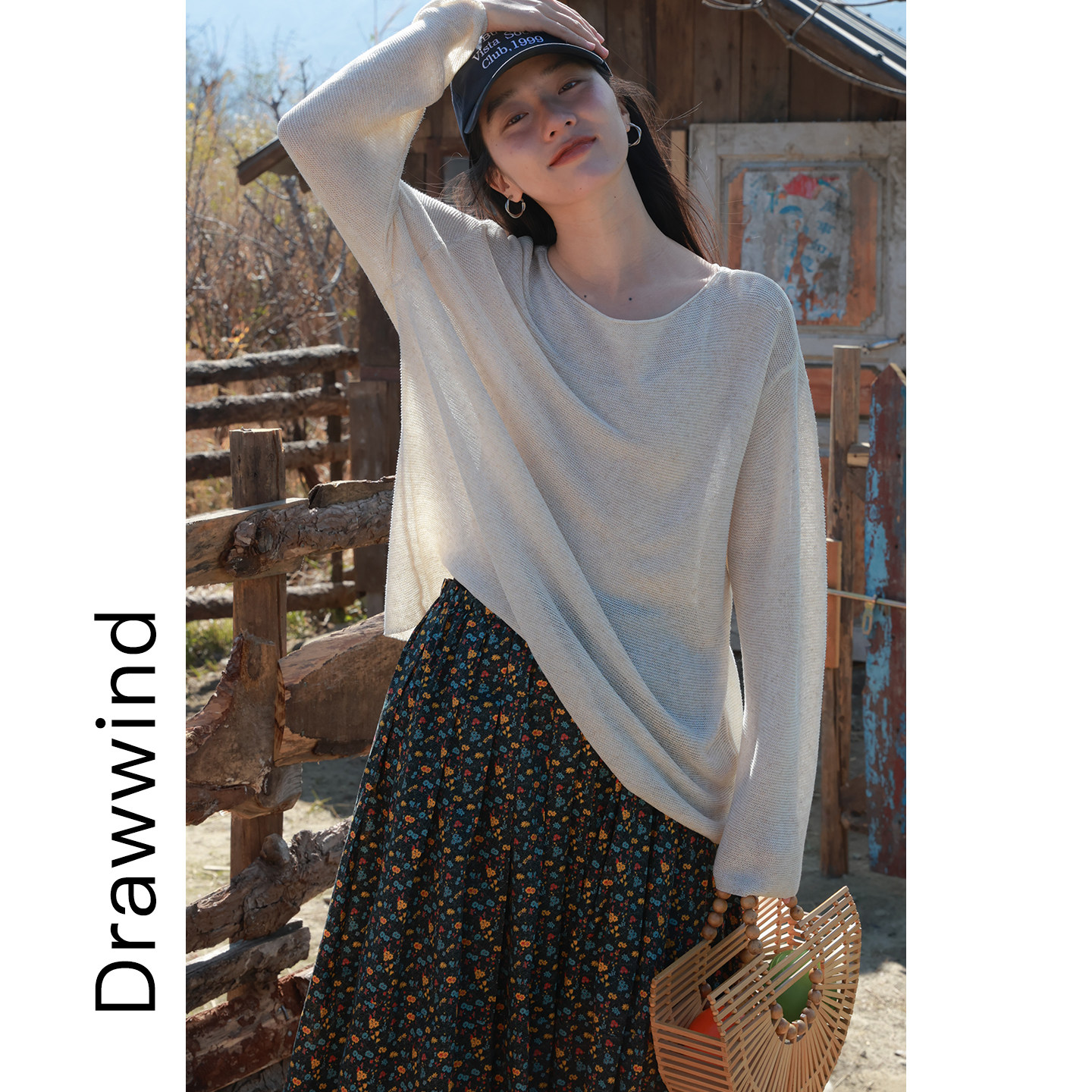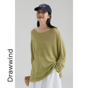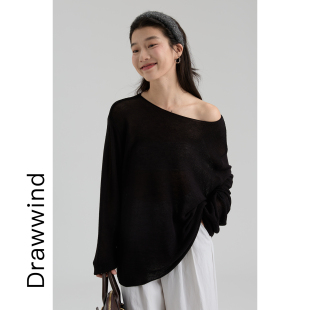 女宽松极简风斜肩防晒长袖 空调罩衫 上衣 新款 画风drawwind2026春季