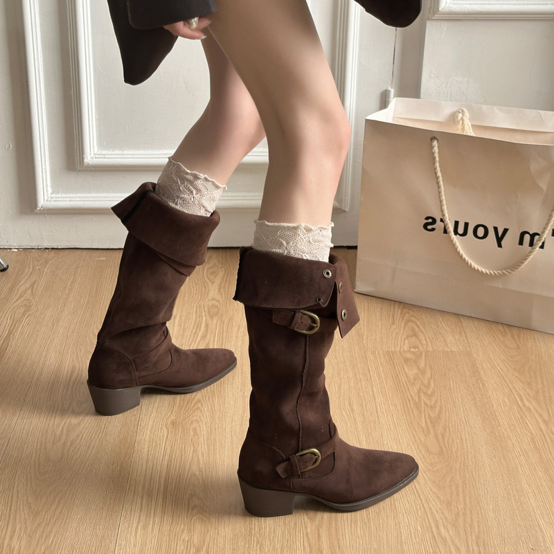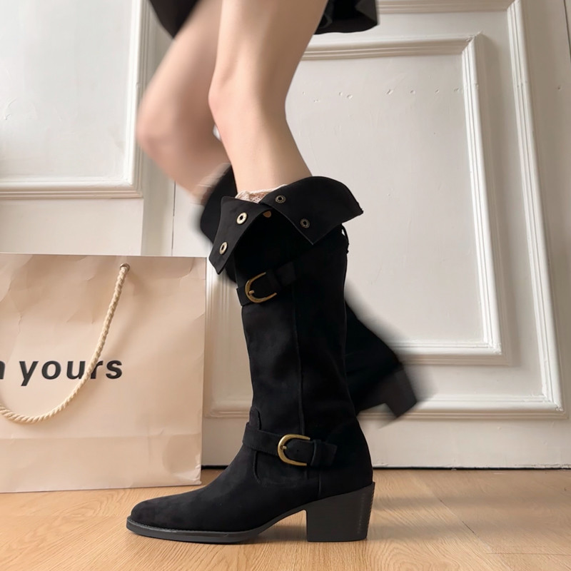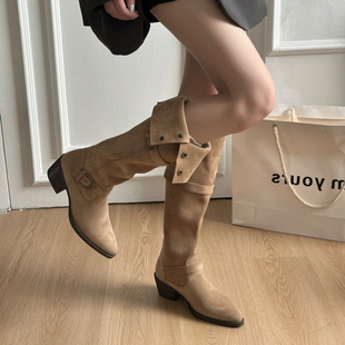 靴皮靴 时装 吴宣仪天美意千金靴复古厚底骑士靴加绒长靴女鞋 子新款